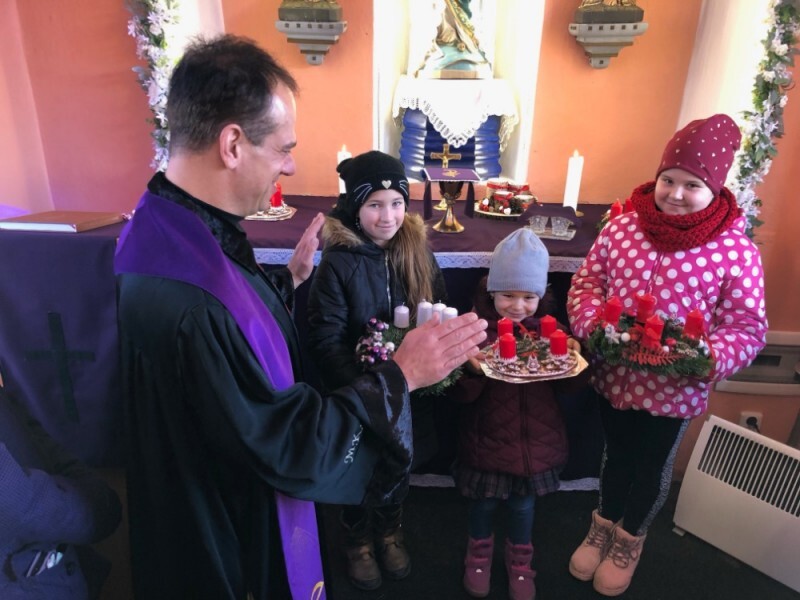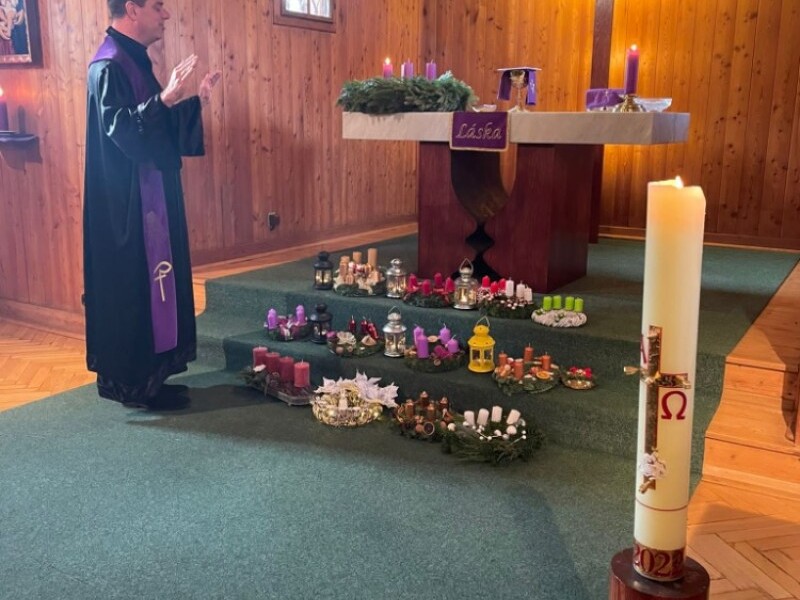 V úterý 22. 11. před biblickou hodinou jsme věnce vyrobili a připravili na neděli. Poslední bohoslužbu uplynulého církevního roku jsme slavili v pátek 25. 11.v 17:30 hodin s přáním všem Kateřinám. To se již definitivně uzavřel liturgický rok s evangelistou Lukášem. V sobotu 26. 11. se v Rudici konala adventní vigilie v místní Kapli sv. Barbory. Bratr farář Martin také v sobotu v podvečer symbolicky zapálil první adventní svíci na věnci, který je na hlavním náměstí v Blansku. Při té příležitosti přednesl adventní zamyšlení na zaplněném náměstí blanenskými farníky a spoustou kolemjdoucích. Na první adventní neděli se konaly v 7:45 hodin první bohoslužby v Boskovicích. Vzhledem k tomu, že v celé ulici byla přerušena dodávka el. energie, byly to opravdové roráty. Bez světel, varhan a topení, ještěže je v kostele klavír, tak jsme nebyli bez hudby, protože naše varhanice hrála na klavír. Další bohoslužba byla v 9 hodin v Dřevěném kostele v Blansku a po ní tradiční posezení pro všechny generace na kávě a čaji v sále na faře. Sváteční dopoledne uzavřela v 11 hodin bohoslužba v kapli na Brťově. Při všech bohoslužbách jsme slavili svátost Pokání s veřejnou zpovědí, jako vstup do času půstu a pokání a na závěr proběhlo žehnání domácích adventních věnečků, které si přinesli někteří účastníci bohoslužeb. První adventní neděli uzavřel v 17:30 hodin první adventní koncert, který se těšil zájmu a účasti mnoha lidí, kteří běžně na bohoslužby nepřicházejí. Věříme, že nás čeká příjemná doba spojená s bohoslužbami, roráty, koncerty a spoustou přátelských setkání. Přejeme požehnaný advent v očekávání zaslibovaného Pána.