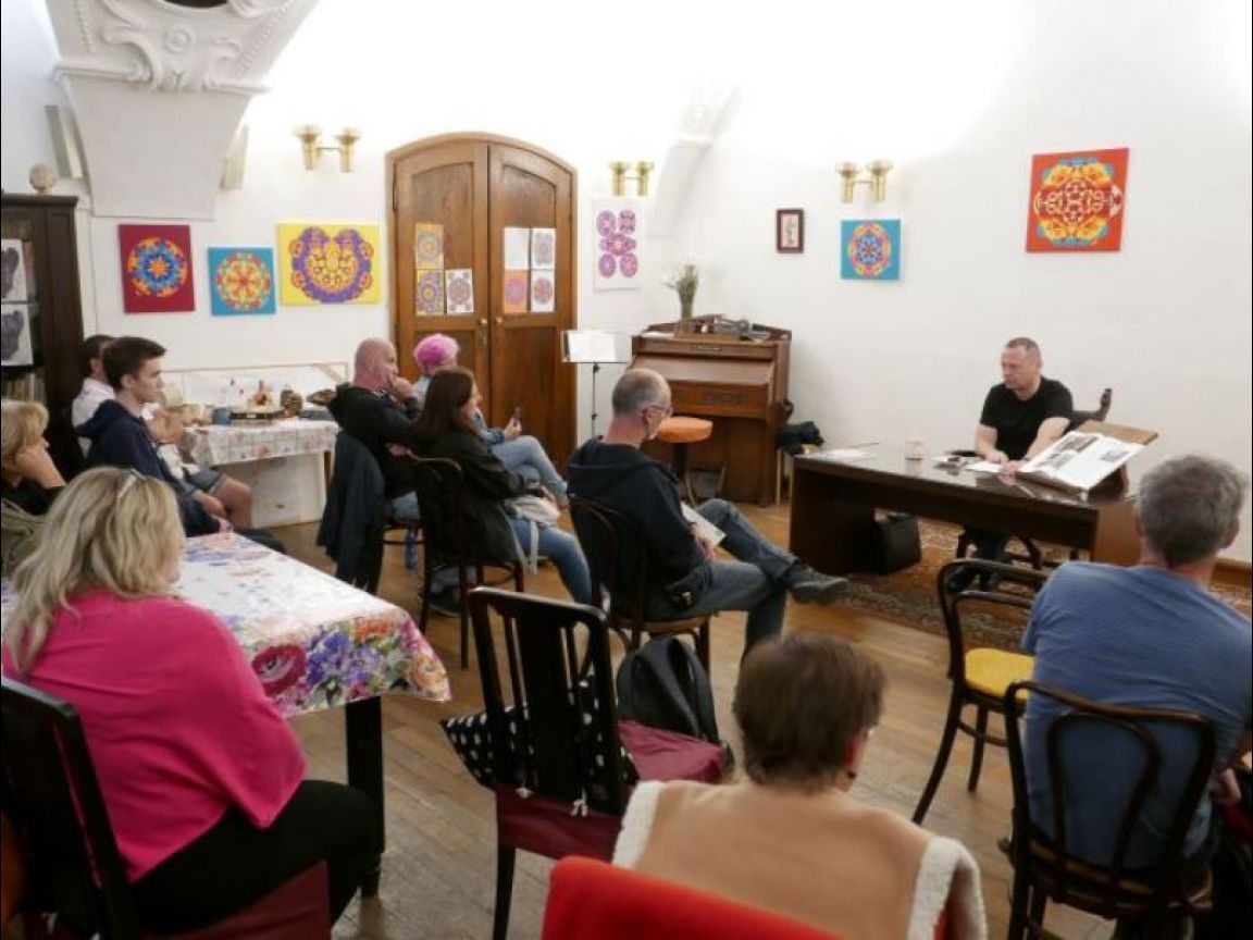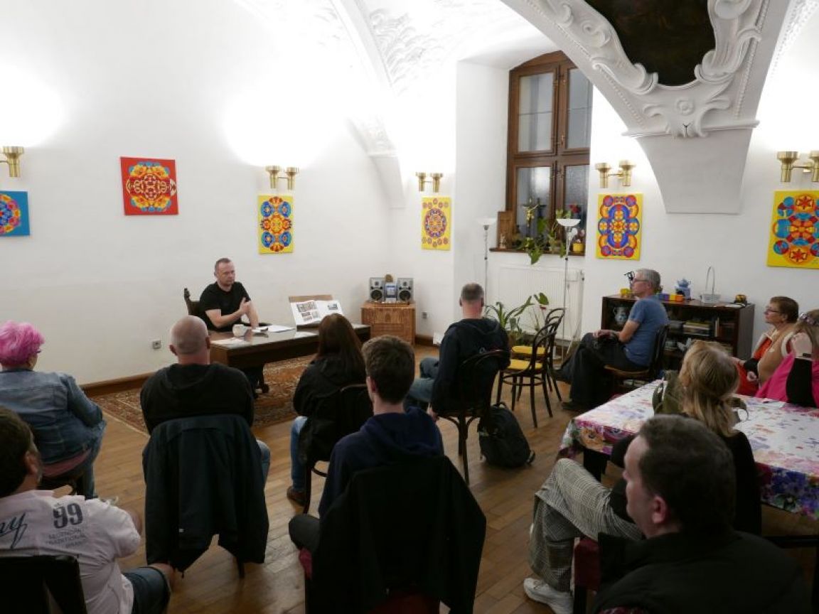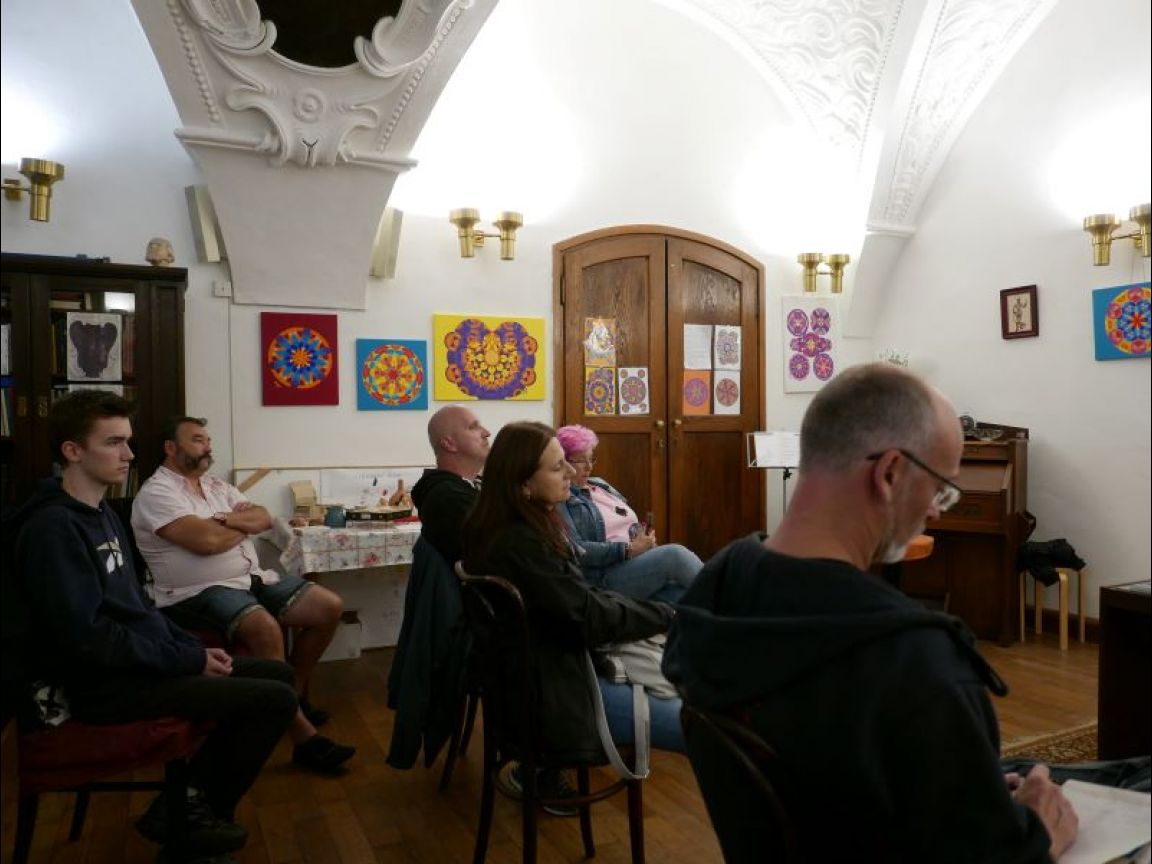 Několik fotografií z přednášky JUDr. Miroslava Houšky v sakristii kostela sv. Václava na Zderaze (Náboženská obec Praha 2 - Nové Město) o Žižkově vojenském řádu (čtvrtek 12. 10. 2023).