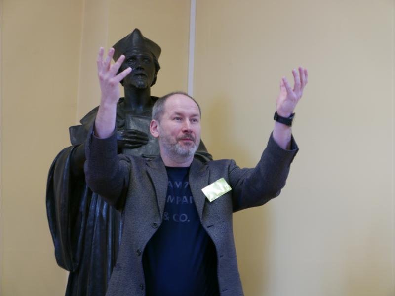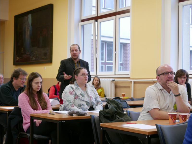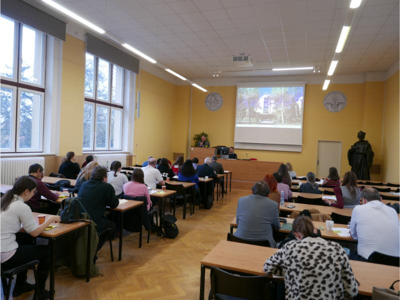 Děkan HTF Jiří Vogel se v přednášce Hodnota a důstojnost osoby v perspektivě biblického personalismu zamyslel nad křesťanským pojetím osoby v kontextu tří otázek: proč je nutné reflektovat její hodnotu, jakým způsobem chápe pojetí osoby biblický personalismus a jak se toto pojetí projevuje v další práci církve.