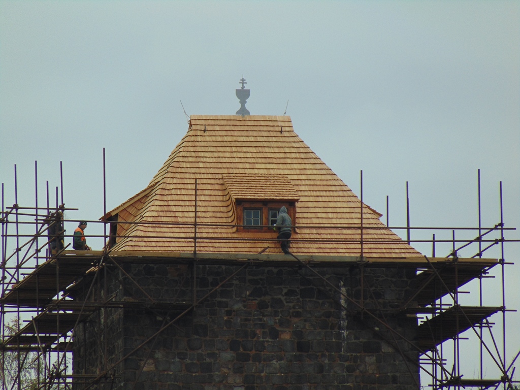 V druhé polovině letošního roku došlo přibližně po čtyřiceti letech k opravě střech jak u rotundy, tak u hradní věže. Stalo se tak z důvodu, že oba historické hambalkové krovy byly narušeny dřevokaznými škůdci, hmyzem a houbami. Původní šindelová krytina byla celá sejmuta, zdravé části smrkového krovu zůstaly zachovány, ty poškozené byly nahrazeny tzv. protézami. V rámci rekonstrukce krovů došlo i k odstranění dřívějších provizorních oprav krovů z 80. let.
