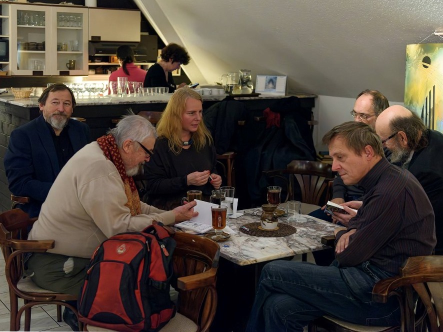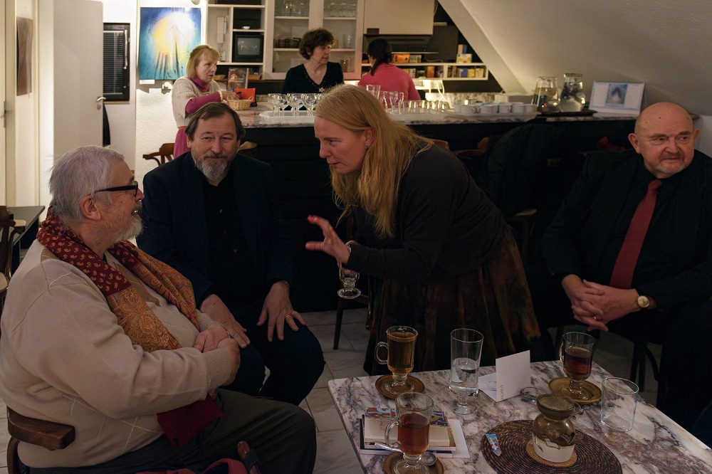 Majitelka galerie Ema Hajná přivítala přítomné spisovatele a další hosty a Olga Nytrová pronesla své zamyšlení nad vznikem a významem „Dialogu“. Poté se ujal slova karlínský farář Jiří Vaníček.