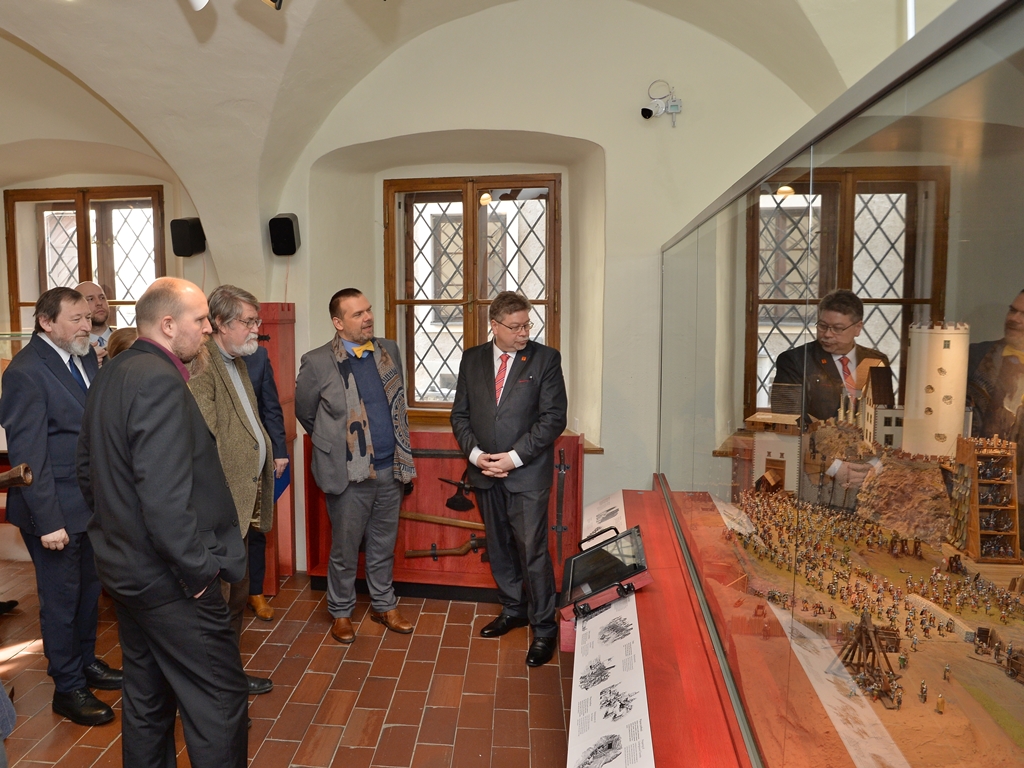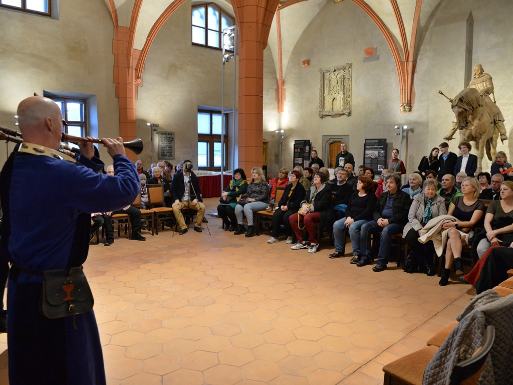 V rámci programu zazněly dobové středověké melodie, které zahrál na repliku historických dud Miloslav Vaváček. Pan ministr spolu s dalšími hosty si mohli prohlédnout novou expozici s výkladem ředitele dr. Jakuba Smrčky, který je autorem scénáře výstavy spolu s dr. Zdeňkem Vybíralem.
