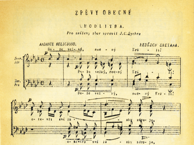 V části Zpěvy obecné je zařazena Smetanova Modlitba z roku 1880 na text Josefa Srba – Debrnova.