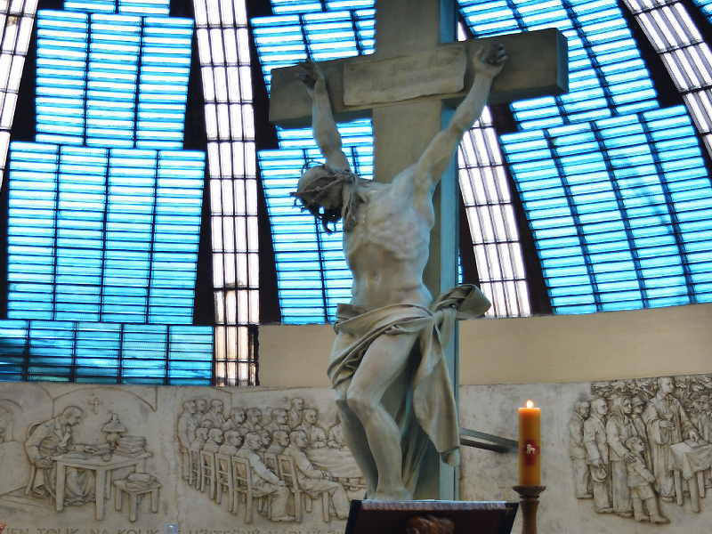 Stejně jako na tuto záležitost mého kolegy, mám v paměti renovaci zdejšího mohutného čtyřmetrového kalichu na věži kostela. Zatímco byl dříve zašlý a dozelena, tak výrazně prokoukl, jeho zlatá barva je až oslnivá. Kalich je vidět z nejen z druhé strany břehu Vltavy ale také ze Žižkova a Vinohrad. Mnozí tento největší pražský kalich považují za nejkrásnější. Ve velikosti jej překová zřejmě jen šestimetrový a padesát tun vážící žulový kalich na vrchu Baldov u Domažlic. Jak kdosi o holešovickém kalichu v komentáři pro televizi k jeho renovaci uvedl: „Dříve nenápadný, ale dnes, nově pozlacený, září při východech a západech slunce nad městem jako maják.“