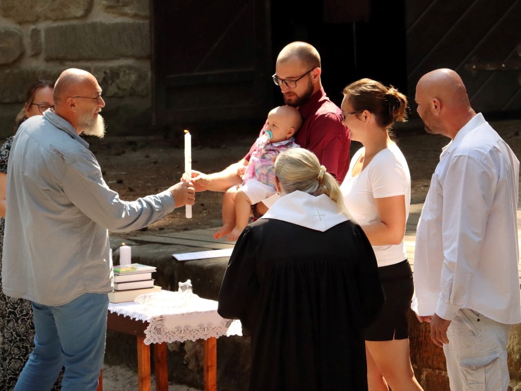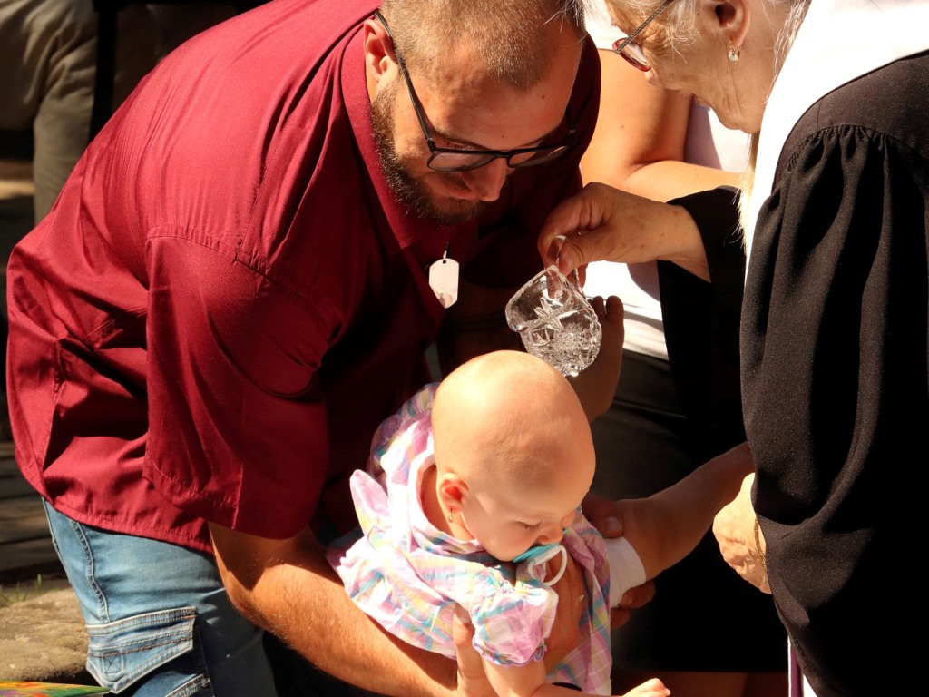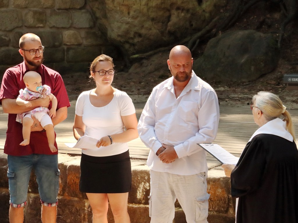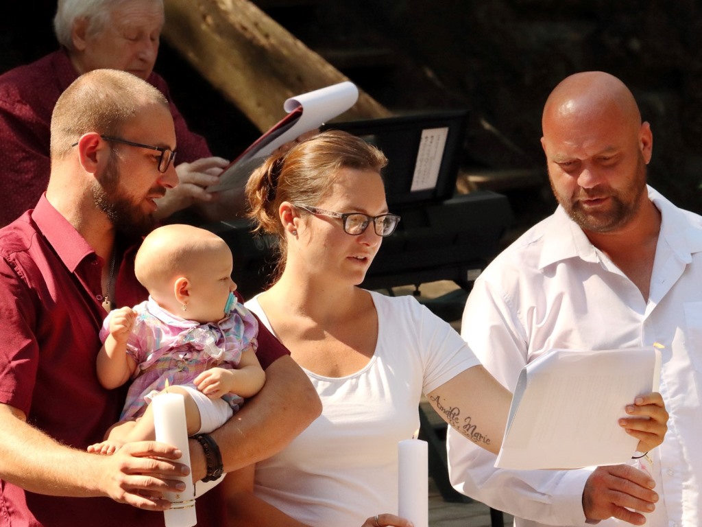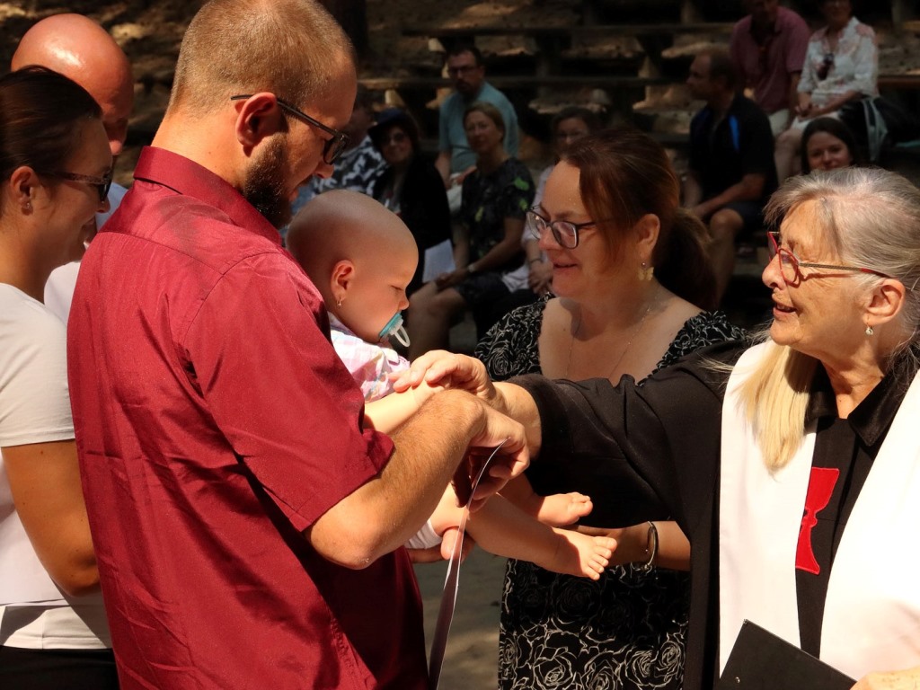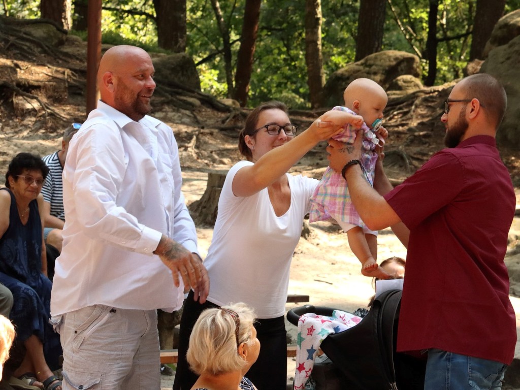 V Lesním divadle jsme pokřtili malou holčičku Viktorku Josefínku a současně s ní i jejího kmotra, maminku a tatínka.