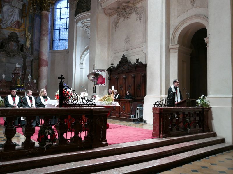 Bohoslužbu sloužil společně biskupský sbor, kázal plzeňský biskup Lukáš Bujna.