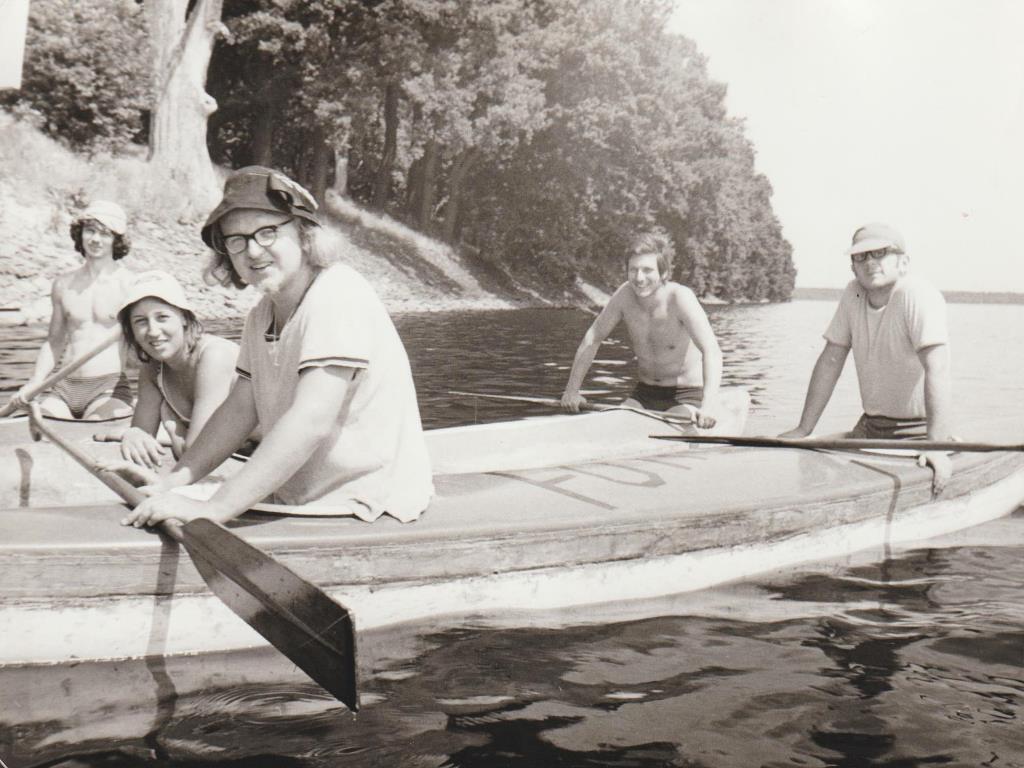 Petr Hladík s přáteli na Lužnici v roce 1973