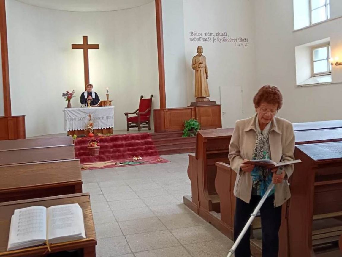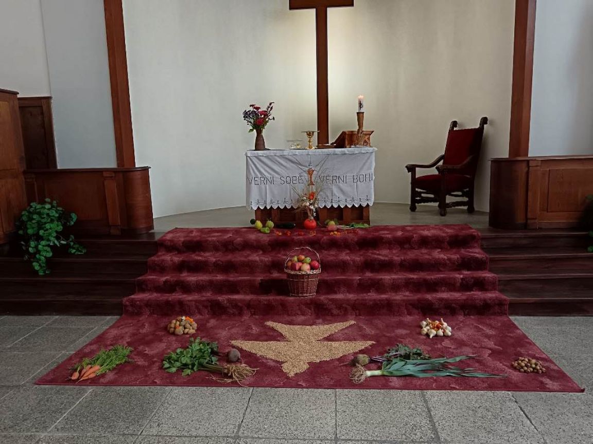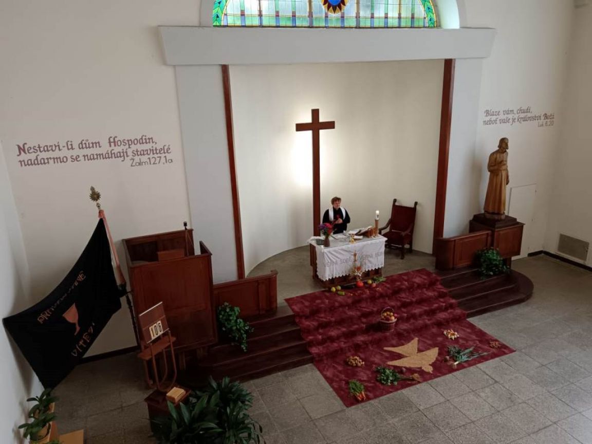 Při bohoslužbě s díkůvzdáním za úrodu místní věřící také poděkovali za osm let služby místní farářky Anny Holínské.