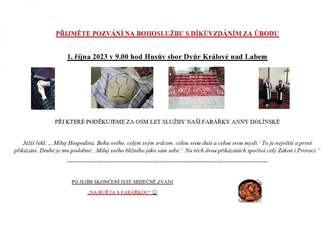 Fotogalerií se ohlížíme za první říjnovou nedělí 1. 10. 2023 v Husově sboru ve Dvoře Králové nad Labem.
