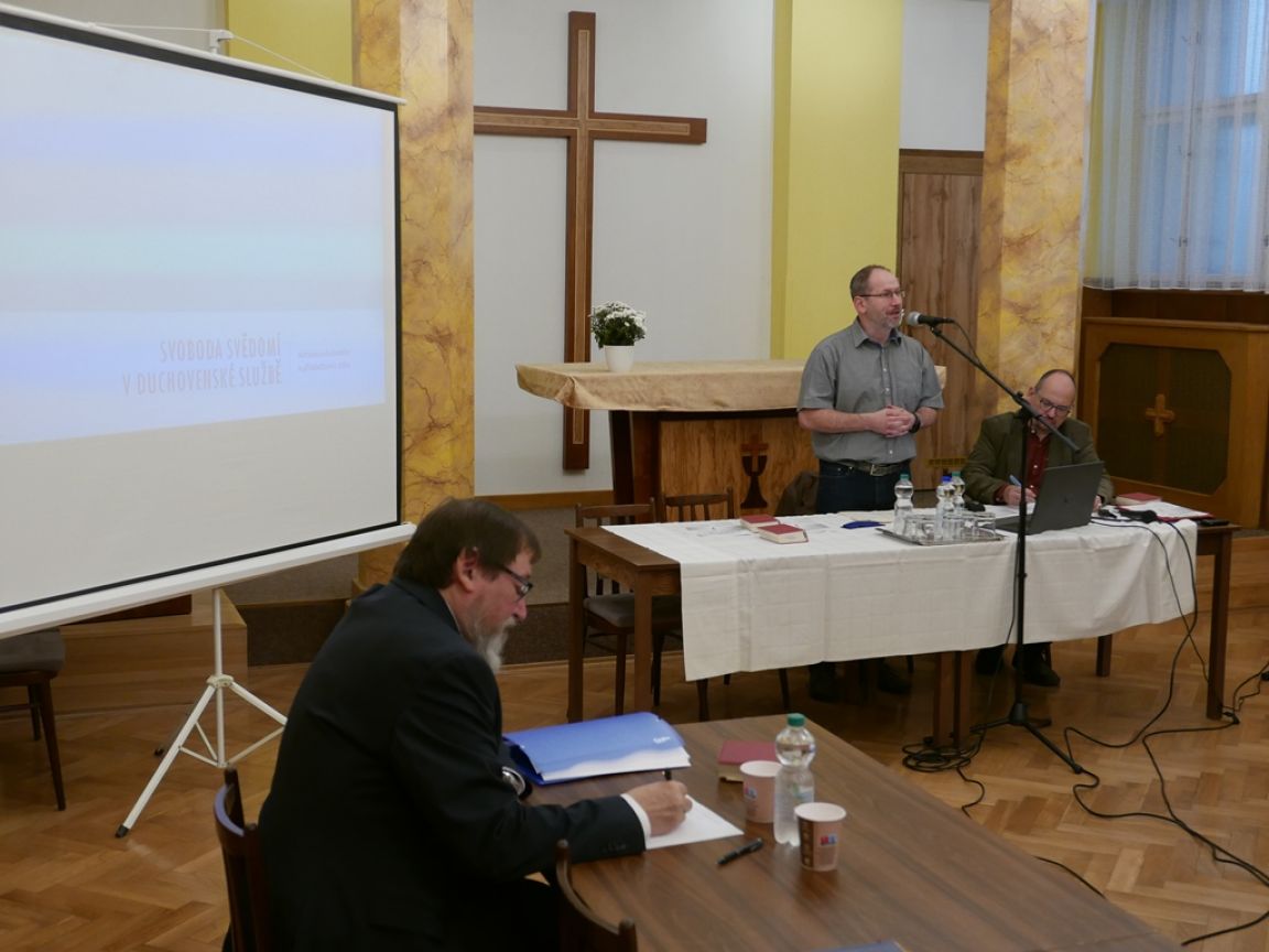 V úvodu bratr patriarcha Tomáš Butta představil publikaci Duchovenská služba v církvi československé husitské (2023), která by měla sloužit mimo jiné jako přípravný text pro církevní zkoušky. Pavel Kolář, vyučující na katedře praktické teologie HTF UK a farář v Praze Nuslích, rozebíral aktuální otázku Autonomie duchovního a přináležitost k církvi a tedy otázku Svobody svědomí v duchovenské službě. Emeritní biskup Štěpán Klásek, nyní farář v Litomyšli, pohovořil o rozmanitých formách aktivit, které se v náboženských obcích kromě samotných bohoslužeb dějí a mohly by se dít i více.