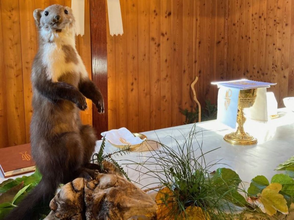 Po pátečních bohoslužbách 10. 11. 2023 v pátek Hanka a Peťa přivezli své vypreparované úlovky. V sobotu Olinka se Zuzkou ke zvířatům vytvořili pěknou podzimní výzdobu.