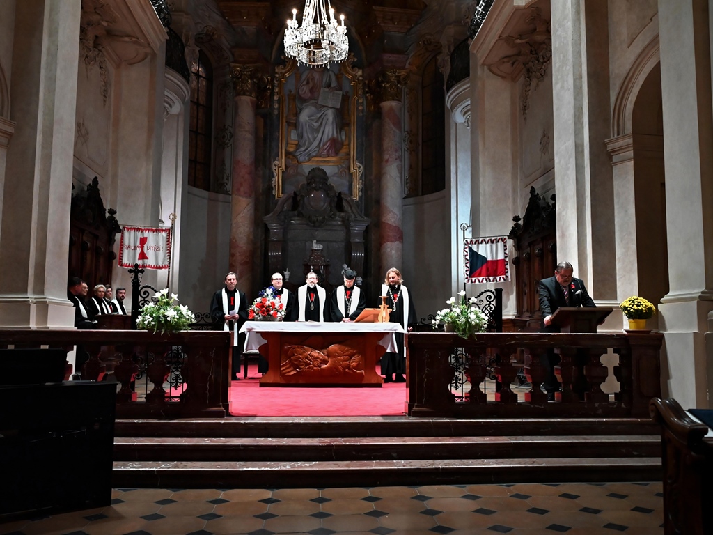 Tradičního slavnostního setkání k připomínce Dne válečných veteránů, 105. výročí ukončení 1. světové války a k 84. výročí úmrtí člena Církve československé husitské studenta Jana Opletala se účastnili duchovní a biskupové Církve československé husitské, zástupci armády ČR, ČsOL, Společnost M. R. Štefánika a další představitelé veřejného, společenského a politického života.