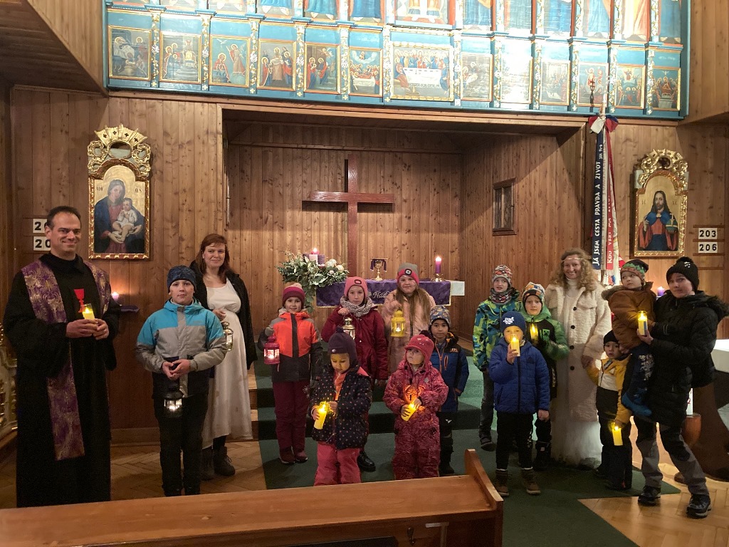 Ohlížíme se také za setkáním pro děti v adventním náboženství. Rorátním průvodem s lucernami za zpěvu antifony “Ejhle, Hospodin přijde” a Mikulášskou návštěvou.