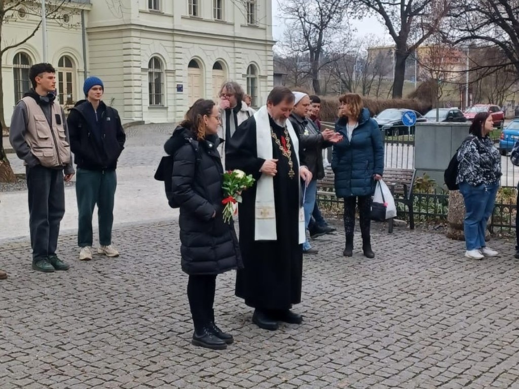 Následoval průvod na Bachmačské náměstí, kde u sochy T. G. Masaryka byla položena květina a zazněla modlitba bratra patriarchy. Setkání bylo zakončeno zpěvem české hymny.