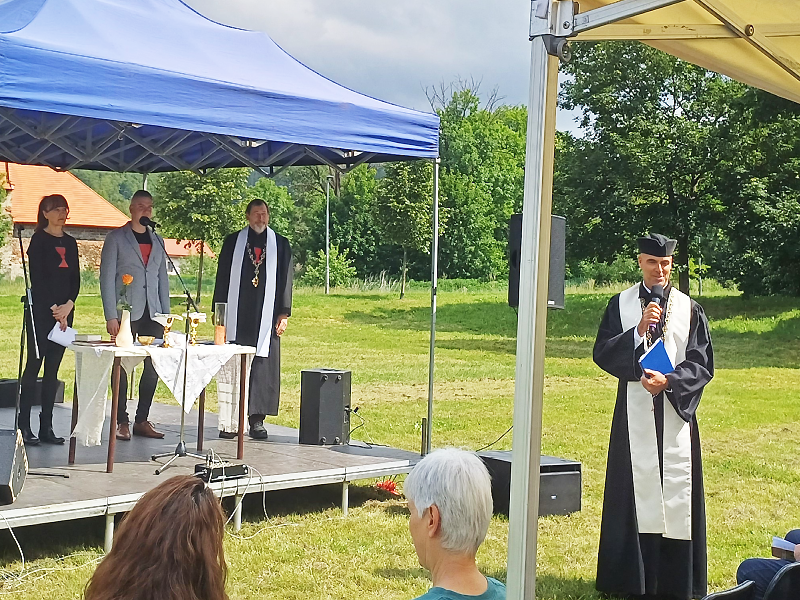 Letošní pouť a zejména bohoslužba měla svůj zvláštní význam jistojistě také pro dva absolventy Husova institutu teologických studií, kteří zde při bohoslužbě přijali z rukou pražského biskupa Davida Tonzara svátost biřmování: Magdalenu Lalákovou a Martina Chynoranského z náboženské obce Litoměřice a Lovosice.