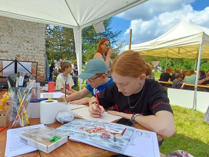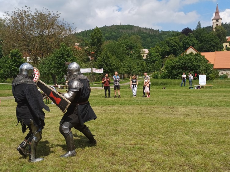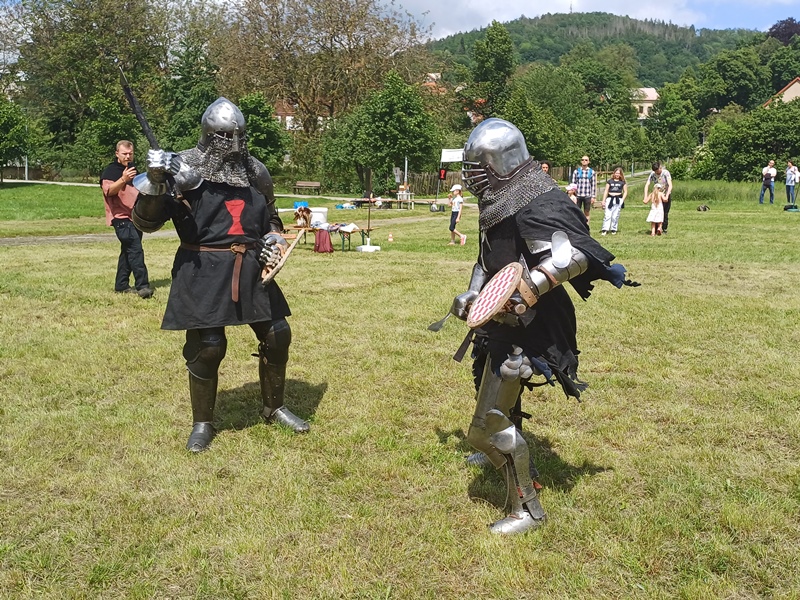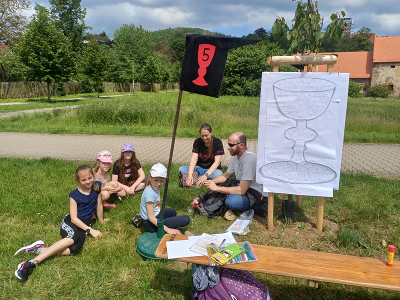Žižku tak připomněl bratr patriarcha Tomáš Butta v kázání při bohoslužbě pod širým nebem (přinesl pozoruhodné srovnání s biblickou postavou Davida, stejně statečného a rozhodného, jenž dokonale vyzbrojeného protivníka porazil svou taktikou, ale hlavně díky pevné víře v Hospodina), napínavý kvíz pěti družstev o ceny (na němž jsme si názorně ověřili, kolik si toho z historie husitství pamatujeme), výtvarná soutěž pro děti (všechny byly ohromně šikovné, kalich zvládli nakreslit i ti nejmenší), zážitkový program pro děti na deseti stanovištích, nazvaný „Výcvikový tábor práčat“, i další části bohatého programu. Pravou „husitskou“ atmosféru dotvořily ukázky zápasů bojovníků husitské pěchoty (naháněli strach, ale byli dobrosrdeční a dětem dali příležitost zkusit, jaké to je, porazit protivníka), bitva u vozové hradby o kalich s (naštěstí) papírovými koulemi, nácvik slavného chorálu Ktož jsú Boží bojovníci (abychom si jej v již dokonalé podobě zopakovali při Rock Festu 2024 v Trocnově první zářijový pátek) a tradiční štafetový běh družstev o putovní pohár opata Prokopa – „stylově“ s palcáty.