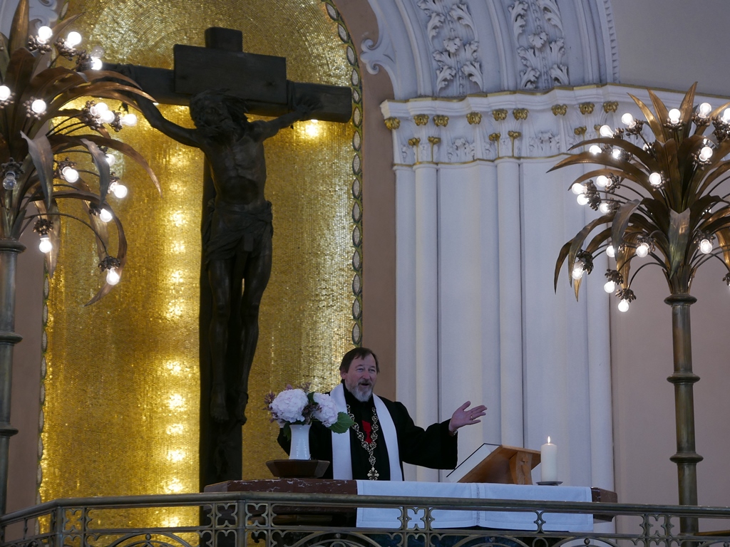 Stalo se rovněž milou tradicí v tento den současnému patriarchovi, jenž se narodil právě 12. června, společně popřát - a tak po bohoślužbě následovalo radostné setkání. A protože bratr Tomáš Butta je literárně mimořádně činný, překvapil nás nejen jako hudebník, ale též dvěma novými publikacemi - "Přes práh 100. výročí (projevy, dopisy příležitostná kázání patriarchy CČSH z let 2020 - 2023)" a "Biblické poselství křesťanských Velikonoc, Duchovní zamyšlení" - které představil.