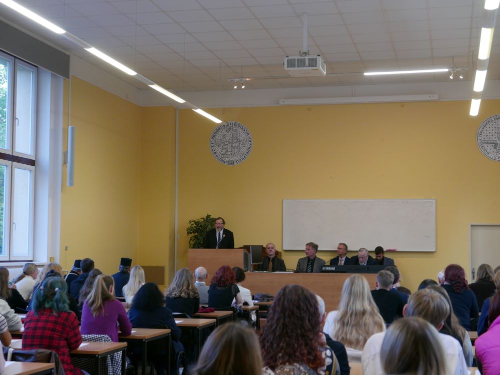 Tradici každoročně drží i naše Husitská teologická fakulta UK, a tak se v jejích prostorách na Zelené Lišce v úterý 1. října setkali na slavnostním zahájení vyučující a pracovníci fakulty, studenti a hosté z naší církve i ekumeny. Akademickou obec zastoupenou v hojném počtu pozdravil děkan fakulty Jiří Vogel, jenž svou řeč pojal především jako poděkování za podporu a pomoc, které se mu dostalo ze strany kolegů za dosavadní funkční - přibližně roční - období ve funkci děkana. Zmínil, co se podařilo v minulém roce, včetně obhájení studijních oborů programu sociální a charitativní práce, i co se chystá, jako například projekt magisterského programu v anglickém jazyce. Slavnostnímu zahájení předcházela modlitba za fakultu ve fakultní kapli pod vedením spirituála fakulty bratra Mgr. Filipa Sedláka.