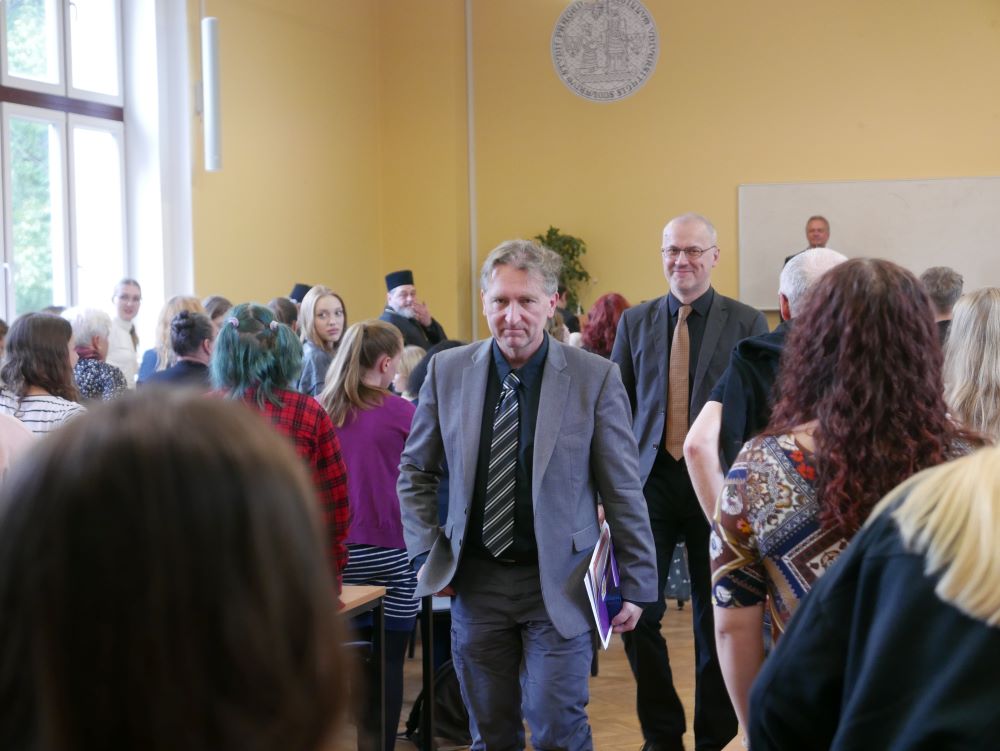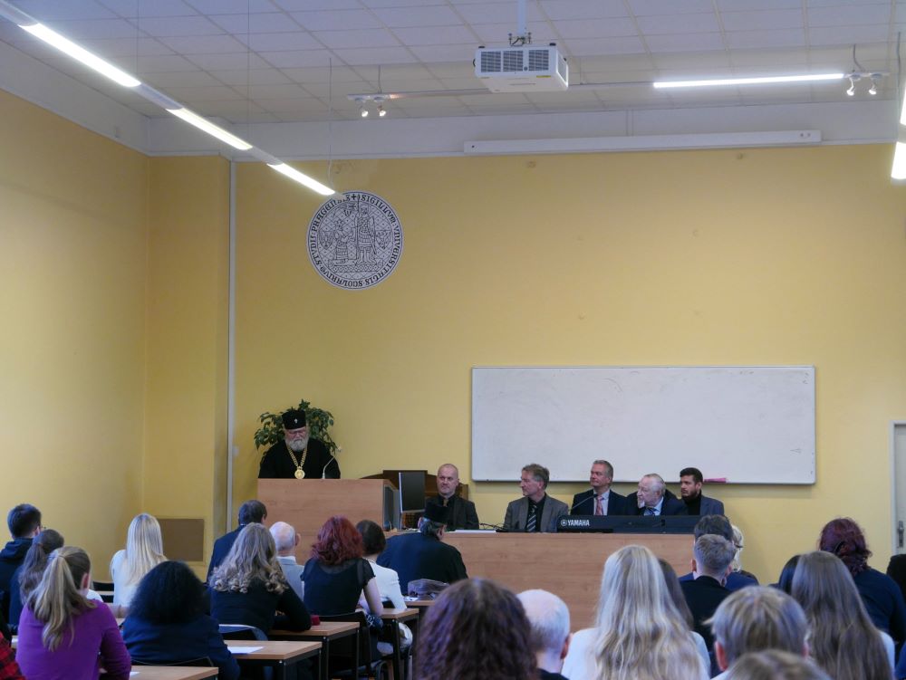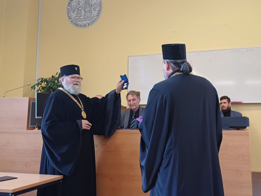 Boží požehnání na nelehké cestě za poznáním popřál studentům arcibiskup Michal, představitel české pravoslavné církve, jenž jako poděkování za dosavadní spolupráci udělil medaili sv. Cyrila a Metoděje doc. Kamile Veverkové a dlouholetému příteli prof. Janu Blahoslavu Láškovi, který se při této milé slavnosti ujal moderátorské funkce a rovněž hudebního doprovodu.