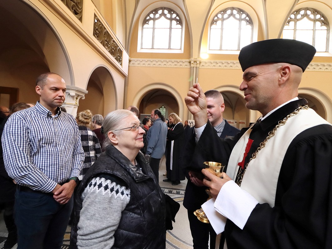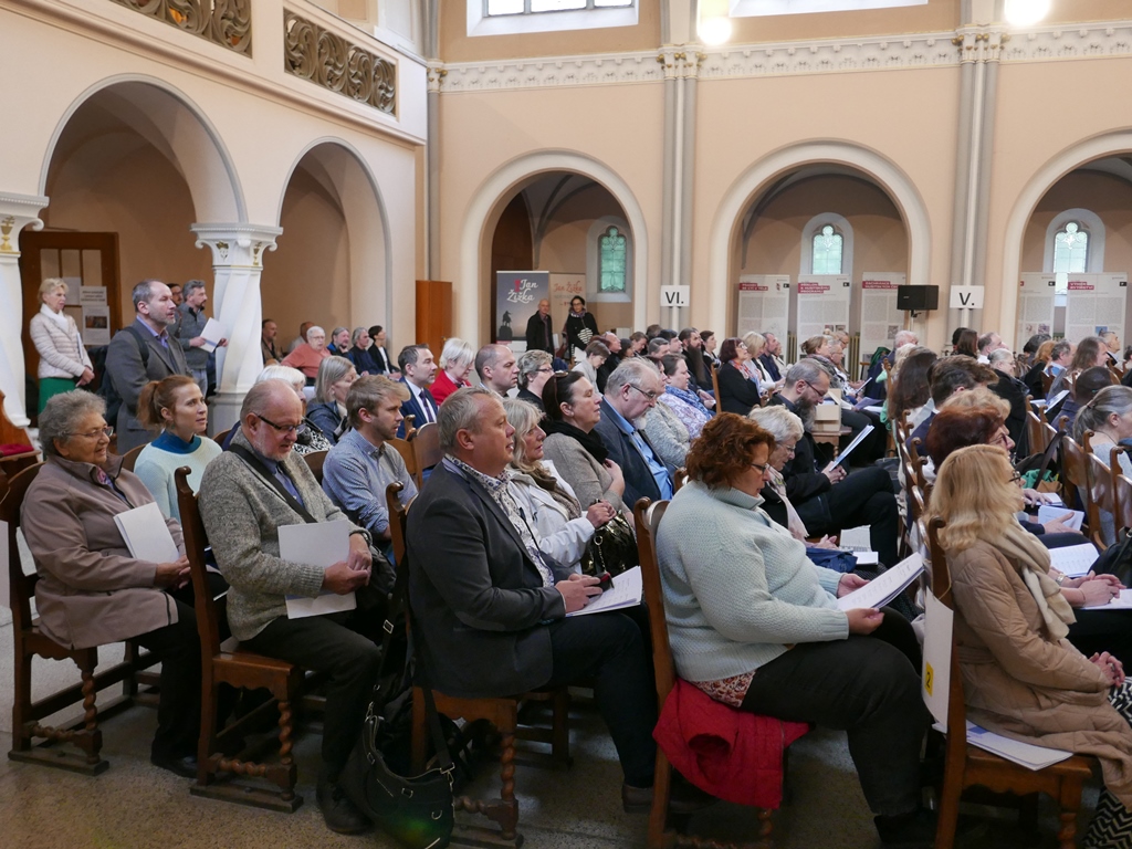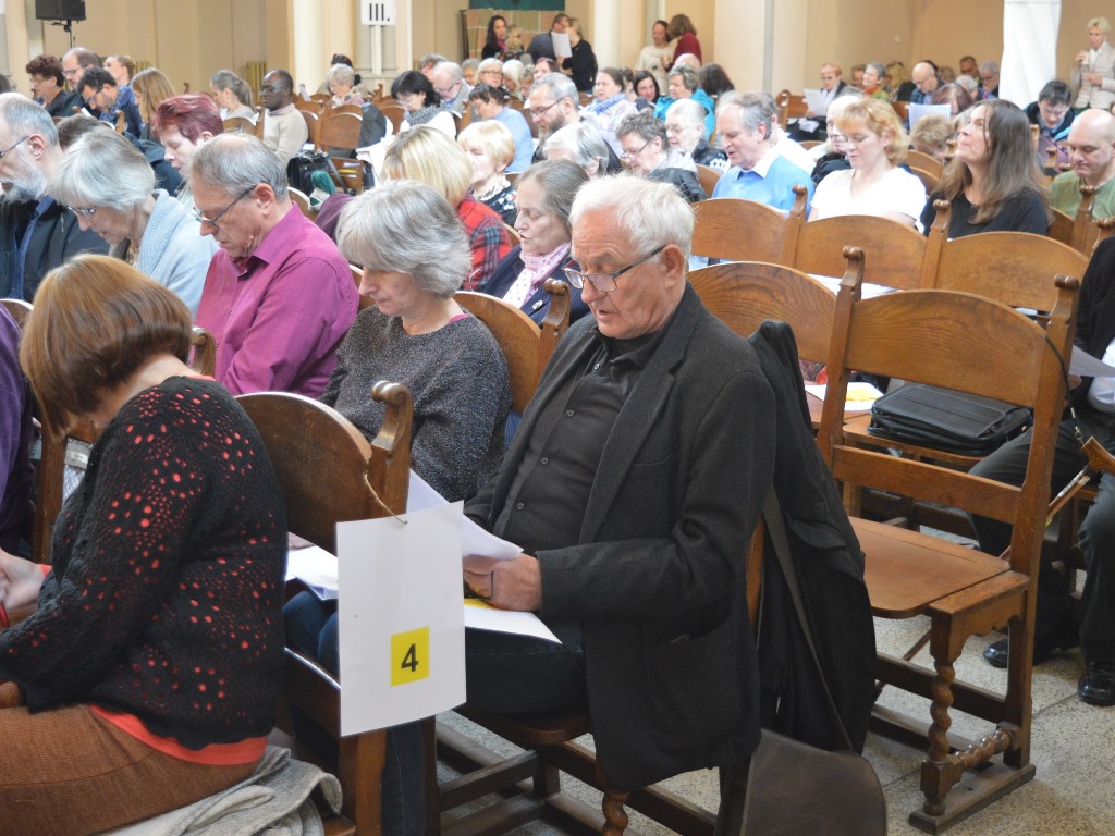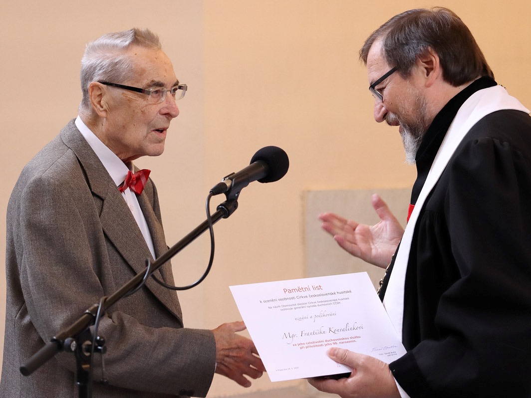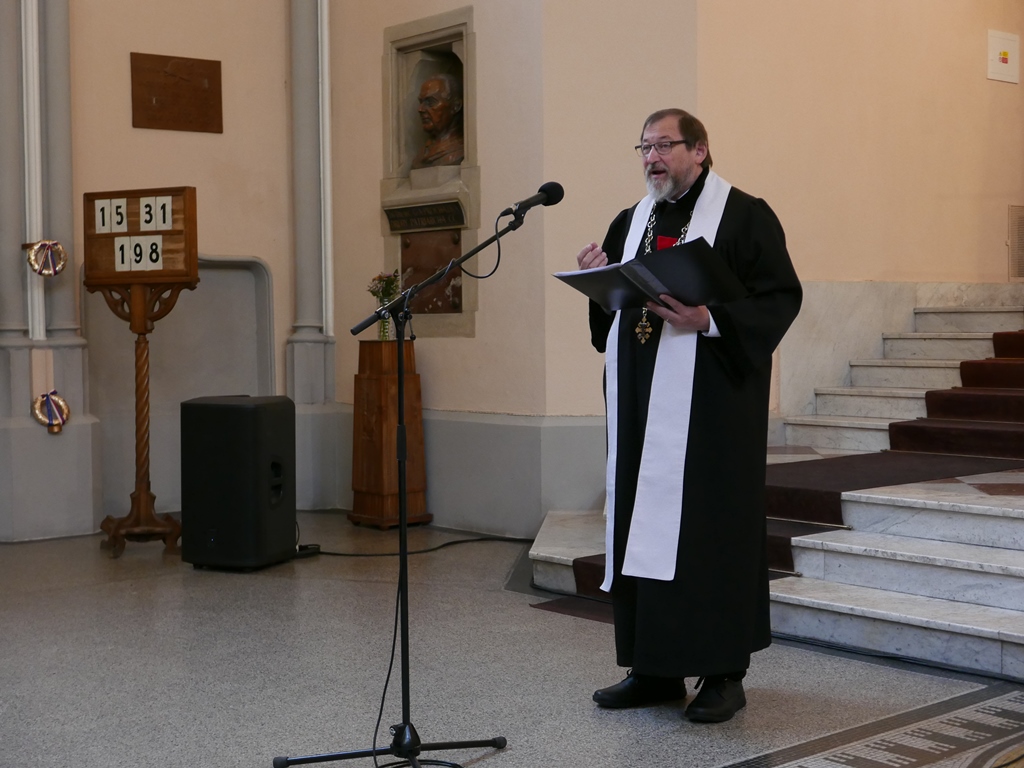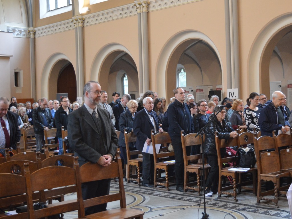 Po bohoslužbě shromáždění pozdravila jménem ERC v ČR ses. Ivana Procházková, superintendentka Evangelické církve metodistické a první místopředsedkyně ERC, která naší církvi popřála statečnost, moudrost a naději. Br. patriarcha poté předal ocenění za dlouholetou duchovenskou službu br. faráři Františku Konvalinkovi, ses. em. biskupce Janě Šilerové a br. faráři a výtvarníkovi Lumíru Čmerdovi in memoriam, za nějž ocenění převzala jeho manželka ses. Irena Čmerdová. Bratřím biskupům Pechancovi, Dovalovi a Tonzarovi předal pamětní medaile k 600. výročí Jana Žižky z Trocnova.
