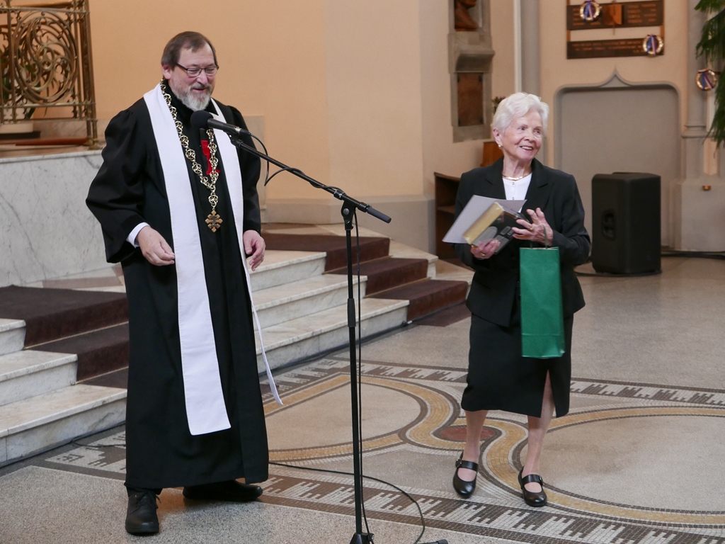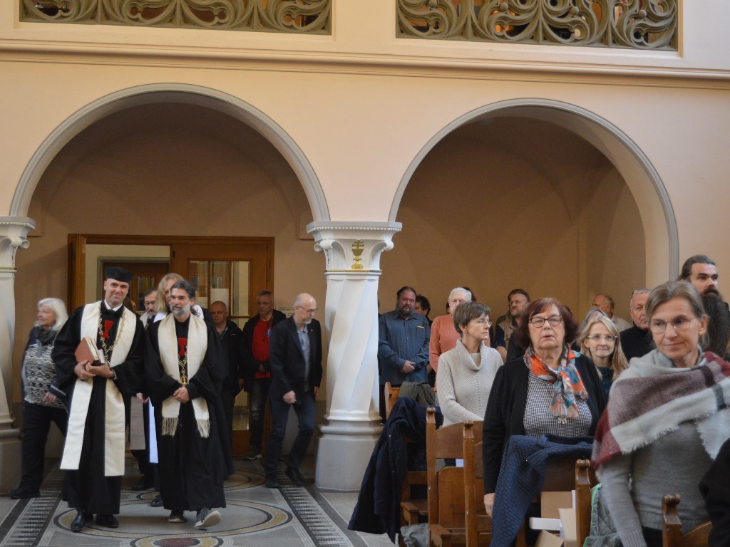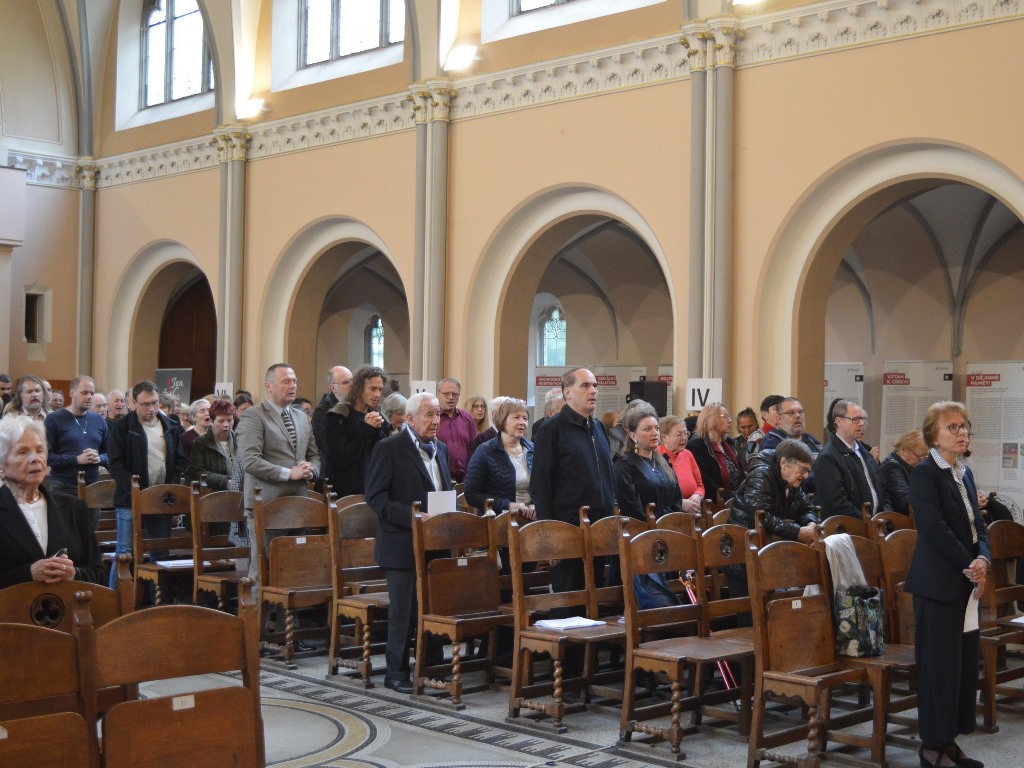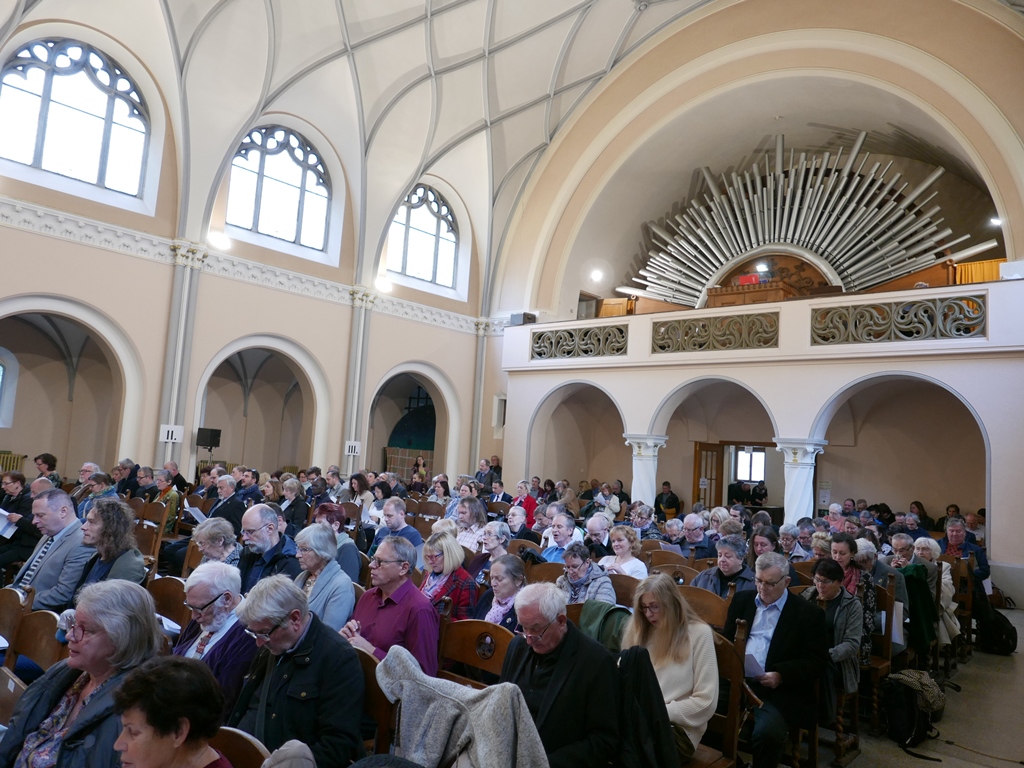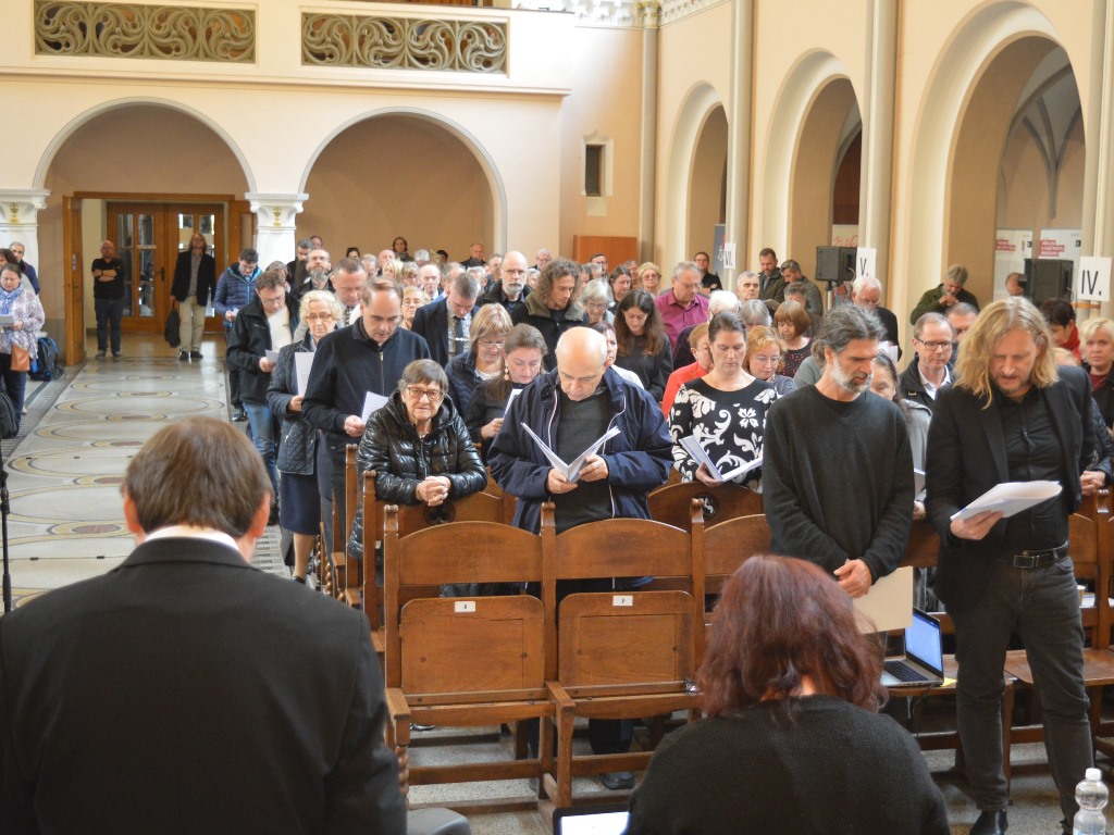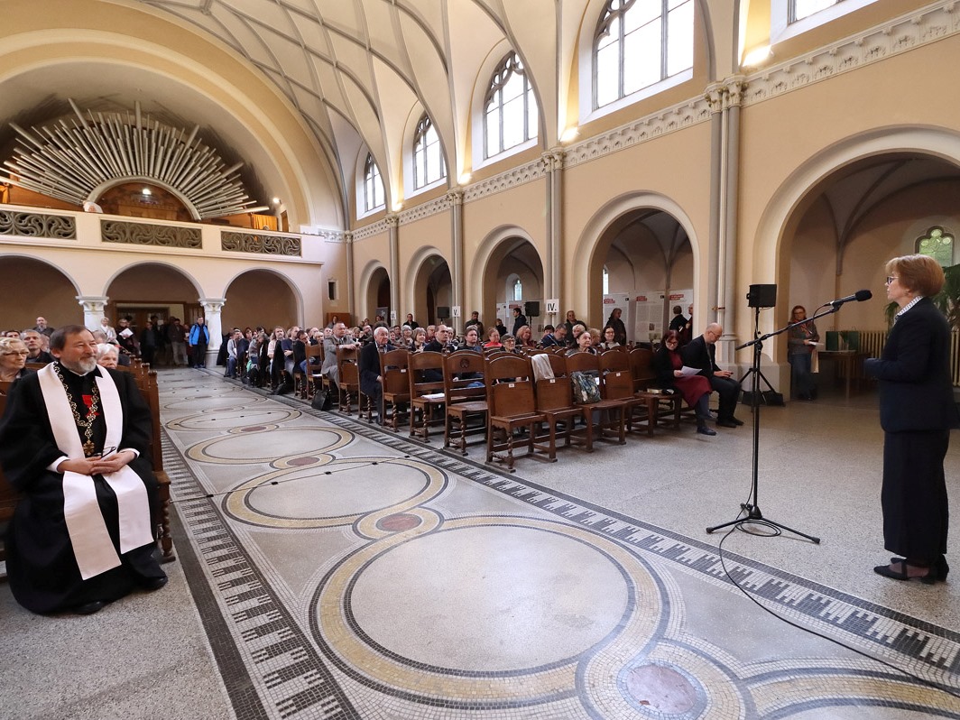 Po bohoslužbě shromáždění pozdravila jménem ERC v ČR ses. Ivana Procházková, superintendentka Evangelické církve metodistické a první místopředsedkyně ERC, která naší církvi popřála statečnost, moudrost a naději. Br. patriarcha poté předal ocenění za dlouholetou duchovenskou službu br. faráři Františku Konvalinkovi, ses. em. biskupce Janě Šilerové a br. faráři a výtvarníkovi Lumíru Čmerdovi in memoriam, za nějž ocenění převzala jeho manželka ses. Irena Čmerdová. Bratřím biskupům Pechancovi, Dovalovi a Tonzarovi předal pamětní medaile k 600. výročí Jana Žižky z Trocnova.