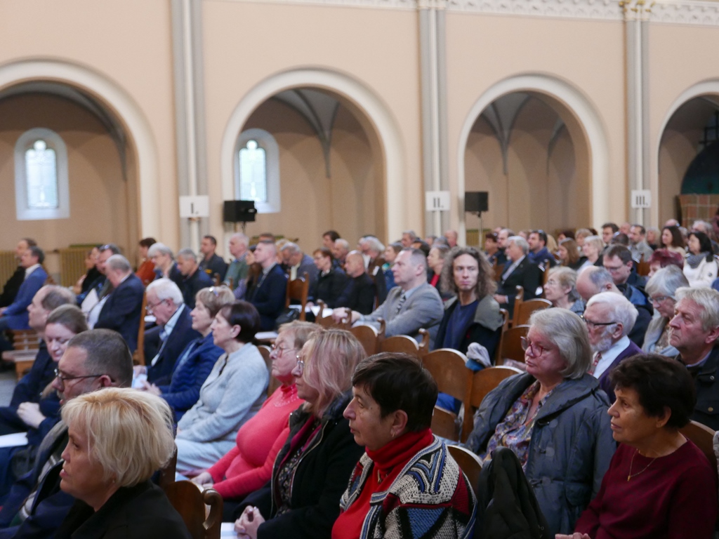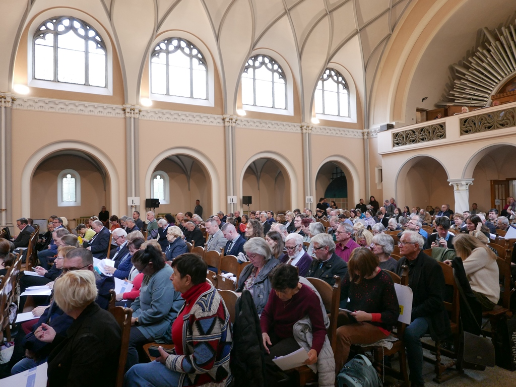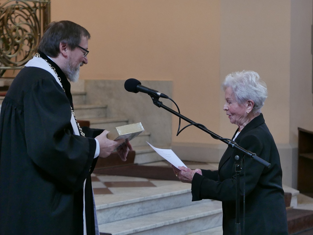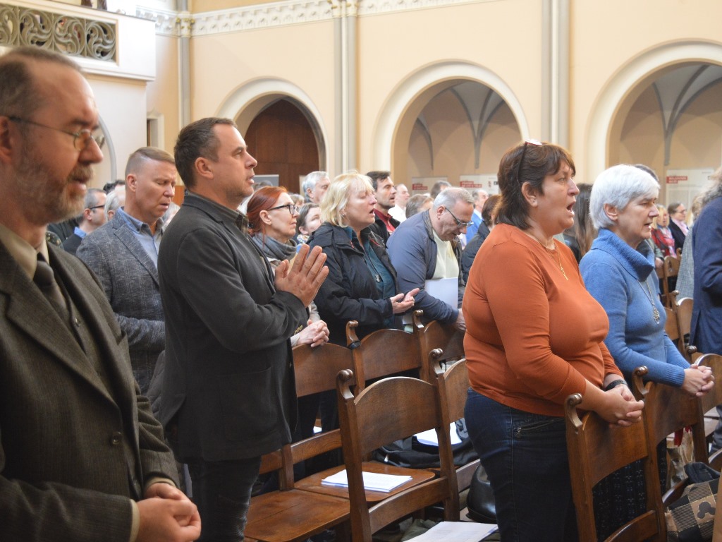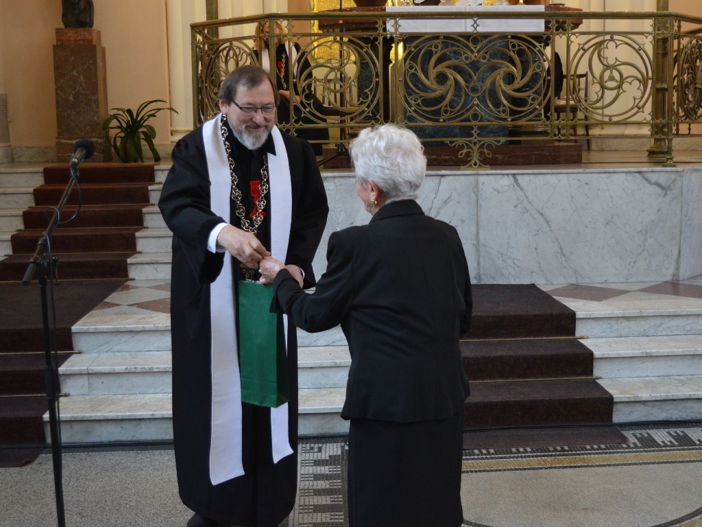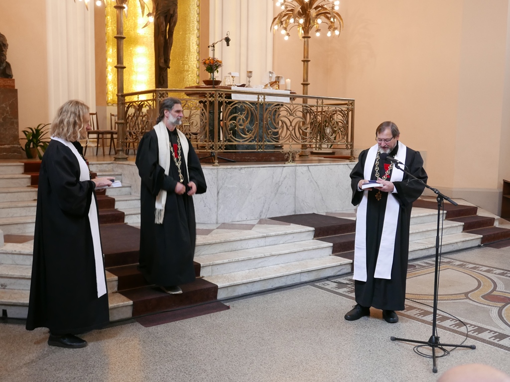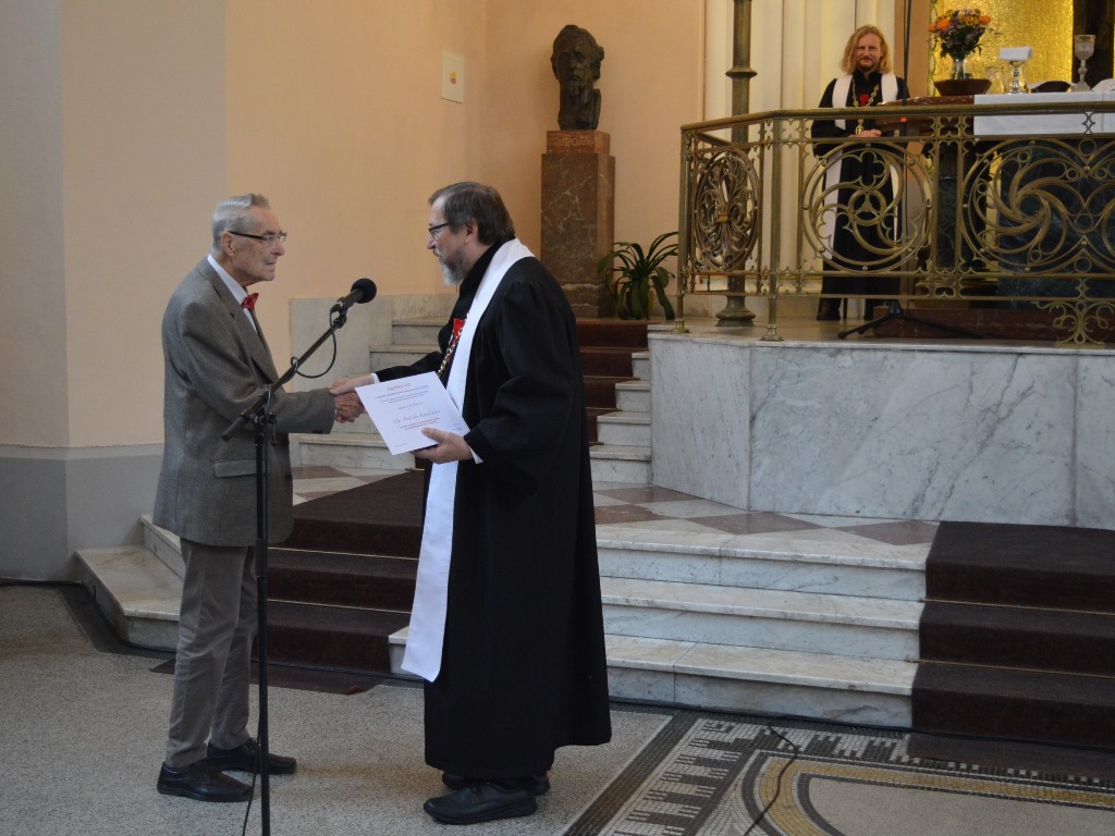 Po bohoslužbě shromáždění pozdravila jménem ERC v ČR ses. Ivana Procházková, superintendentka Evangelické církve metodistické a první místopředsedkyně ERC, která naší církvi popřála statečnost, moudrost a naději. Br. patriarcha poté předal ocenění za dlouholetou duchovenskou službu br. faráři Františku Konvalinkovi, ses. em. biskupce Janě Šilerové a br. faráři a výtvarníkovi Lumíru Čmerdovi in memoriam, za nějž ocenění převzala jeho manželka ses. Irena Čmerdová. Bratřím biskupům Pechancovi, Dovalovi a Tonzarovi předal pamětní medaile k 600. výročí Jana Žižky z Trocnova.