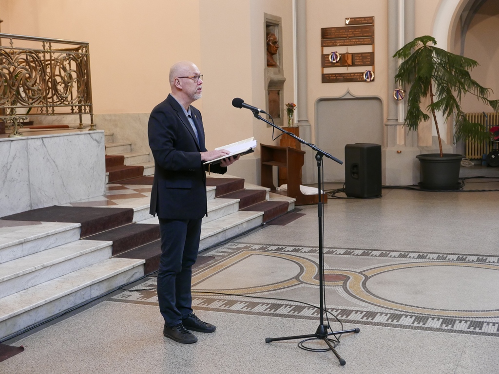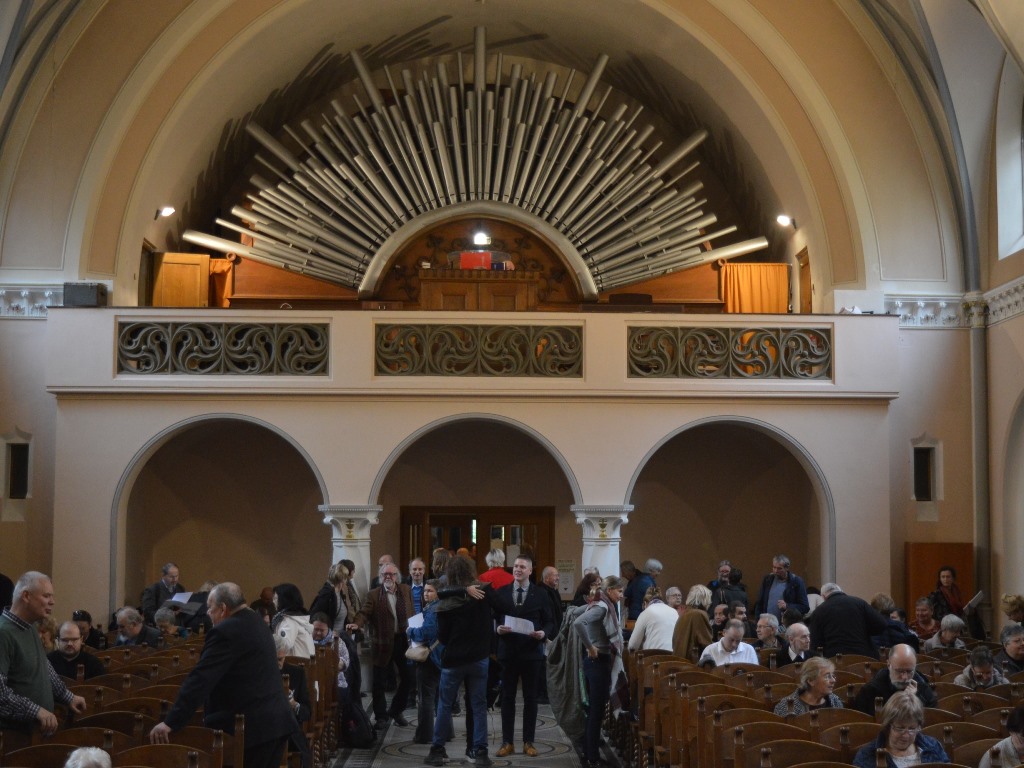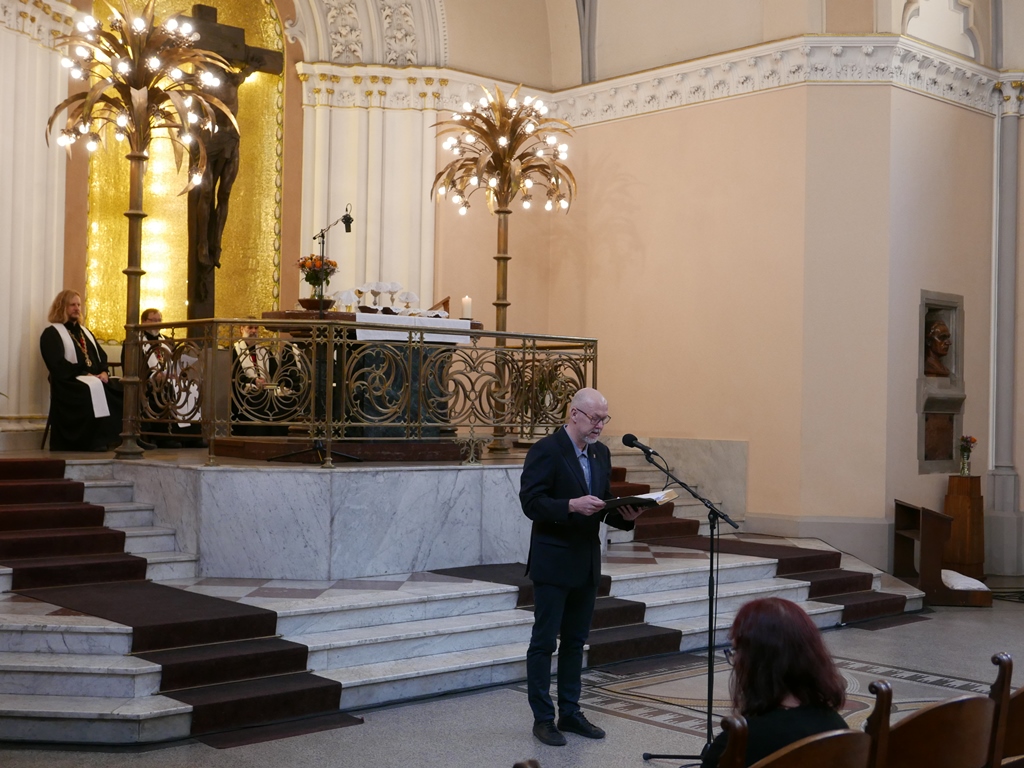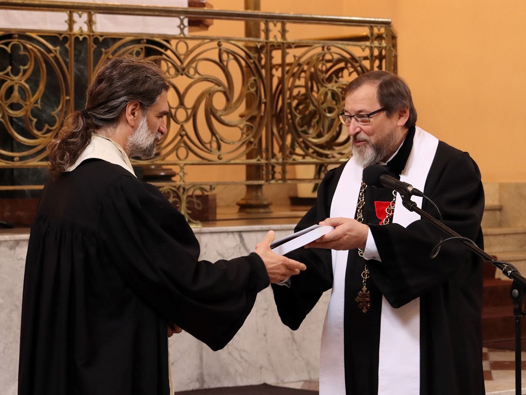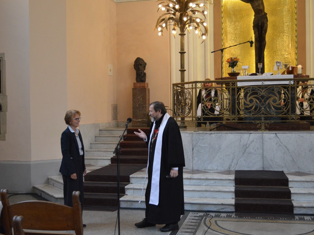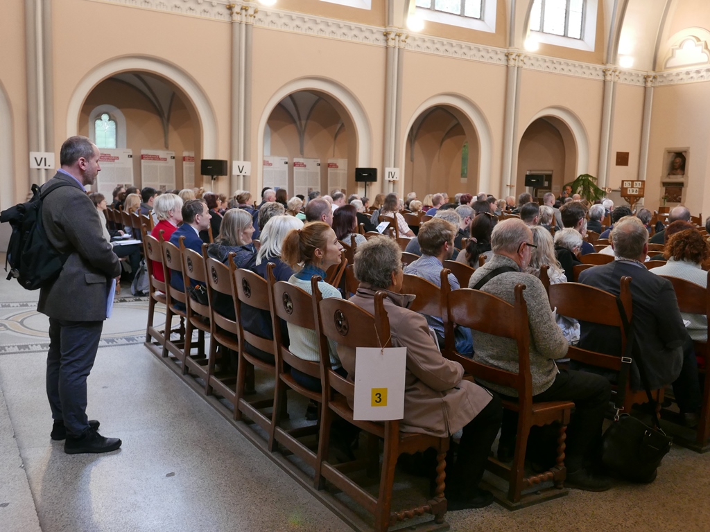 Po bohoslužbě shromáždění pozdravila jménem ERC v ČR ses. Ivana Procházková, superintendentka Evangelické církve metodistické a první místopředsedkyně ERC, která naší církvi popřála statečnost, moudrost a naději. Br. patriarcha poté předal ocenění za dlouholetou duchovenskou službu br. faráři Františku Konvalinkovi, ses. em. biskupce Janě Šilerové a br. faráři a výtvarníkovi Lumíru Čmerdovi in memoriam, za nějž ocenění převzala jeho manželka ses. Irena Čmerdová. Bratřím biskupům Pechancovi, Dovalovi a Tonzarovi předal pamětní medaile k 600. výročí Jana Žižky z Trocnova.