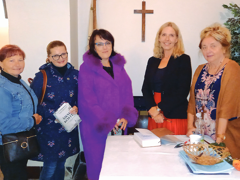Naše oslavy stihly ještě v týdnu před zátopami i setkání s autorkou Šikmého kostela paní Karin Lednickou. Šikmý kostel jsem poprvé viděla snad před padesáti lety. Nejspíš cestou autobusem z vratimovské náboženské obce za karvinským církevním tajemníkem. Mám z toho někde i černobílé foto, jak kostelík podpírám, aby nespadl. Tenkrát měla paní Karin asi čtyři roky. Třídílná sága připomene bez nadsázky literárním pamětníkům Forsythy či Buddenbrooky. Precizně, v detailech i historicky objektivně (pro některé někdy až moc) připomíná skrze lidsky vykreslené osudy lidí v karvinském revíru doby taky všelijak šikmé a nelehké.
