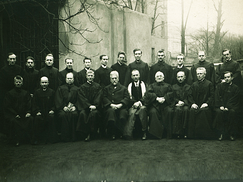 Na snímku jsou účastníci přípravného kursu na svěcení v semináři ve Šmilovského ul. v Praze-Vinohradech společně s přednášejícími.
