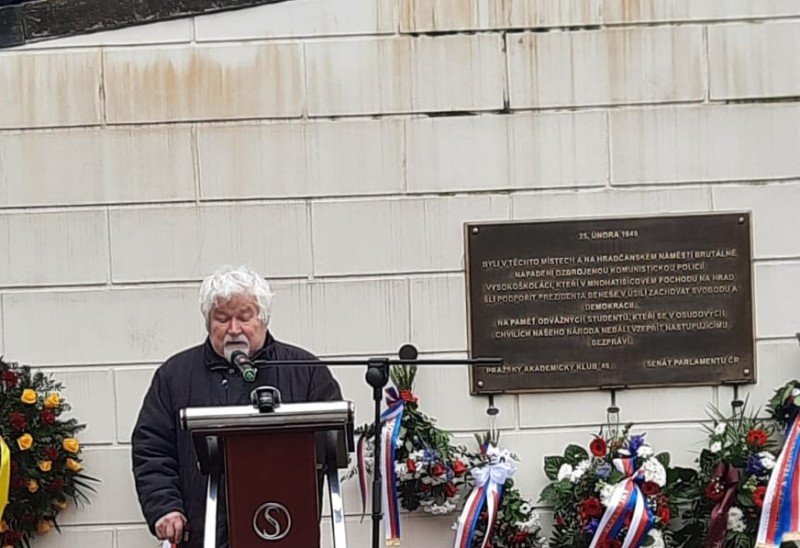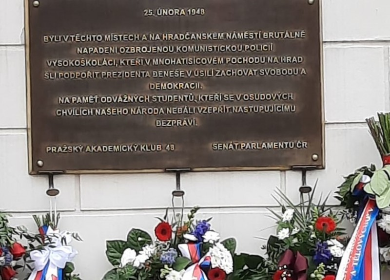 Dne 25. 2. 2023 se konalo pietní shromáždění u příležitosti 75. výročí pochodu studentů za svobodu a demokracii u pamětní desky Senátu Parlamentu ČR v horní části Nerudovy ulice. V projevech vystoupili ústavní činitelé, zástupci univerzit, doc. Petr Pithart, kardinál Duka a další. Vzpomínky se účastnil za Církev československou husitskou bratr patriarcha Tomáš Butta. Foto A. Kubíčková