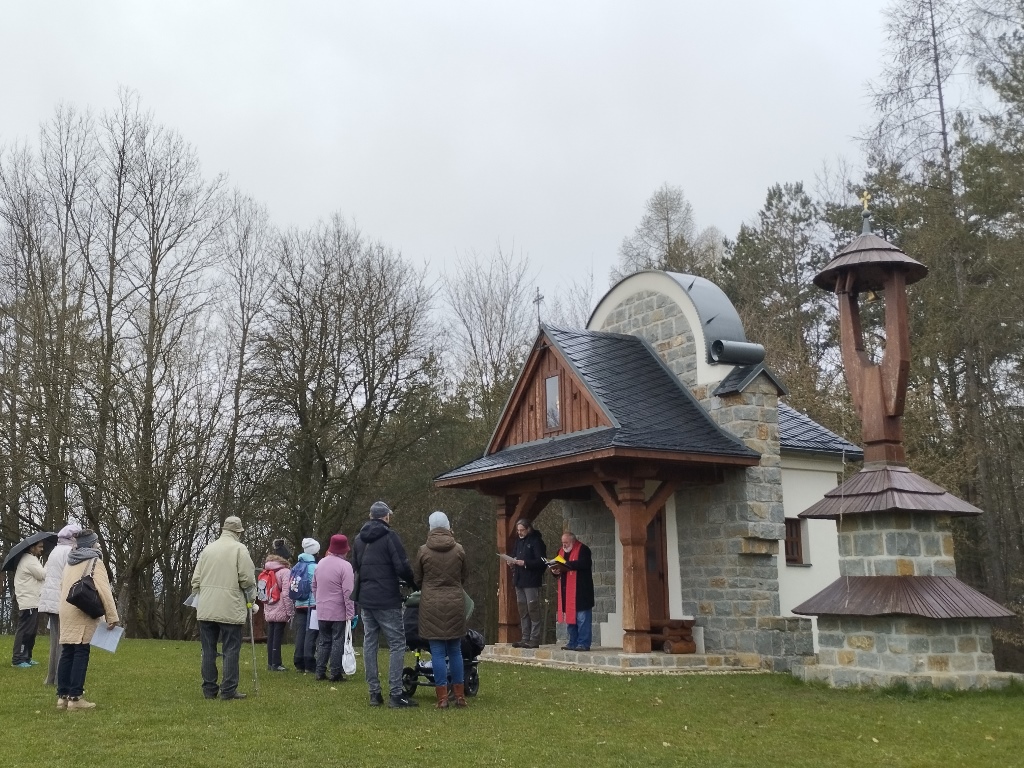A tak jsme se vloni vypravili na Hostišovou (tamní kalvárie je z roku 2009) a letos do Kašavy, kde byla křížová cesta dokončena před deseti lety. Asi dvacítka poutníků (ve věkovém rozmezí od 1 do 92 let) ji procházela v chladném počasí s občasnými prškami deště a sněhu. Prožitek Spasitelovy oběti to však spíš umocňovalo, stejně jako verše z cyklu Křížová cesta Josefa Suchého recitované při každém zastavení. Mohli jsme tak jimi též uctít letošní sté výročí narození tohoto moravského básníka.
