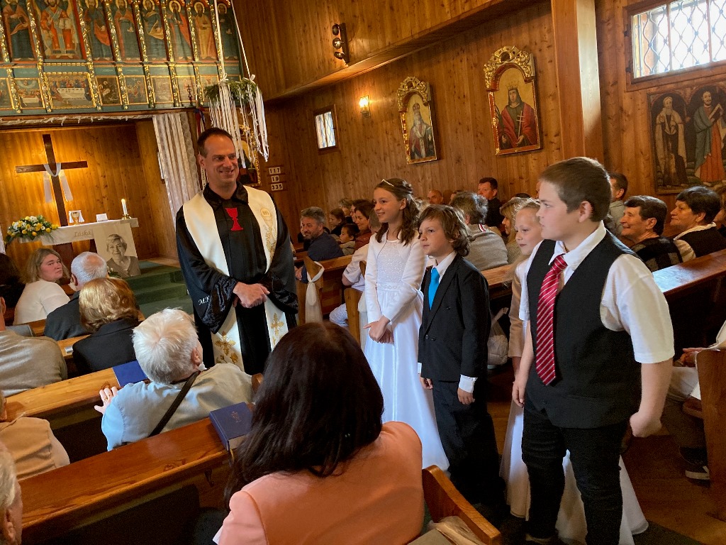V naší farnosti je letitým zvykem, že bohoslužby, při kterých děti poprvé přijímají večeři Páně, začínají veřejnou zpovědí se svátostí Pokání pro děti i dospělé. Během bohoslužeb se děti podílely na čtení z Písma a přímluvných modlitbách; po kázání se konala zkouška jejich znalostí před rodiči, kmotry a celým společenstvím sester a bratrů. I pro mnohé dospělé to bylo příjemné osvěžení znalostí. V závěru bohoslužeb dostaly děti pamětní list. Následoval společný oběd i posezení při oslavě na faře.