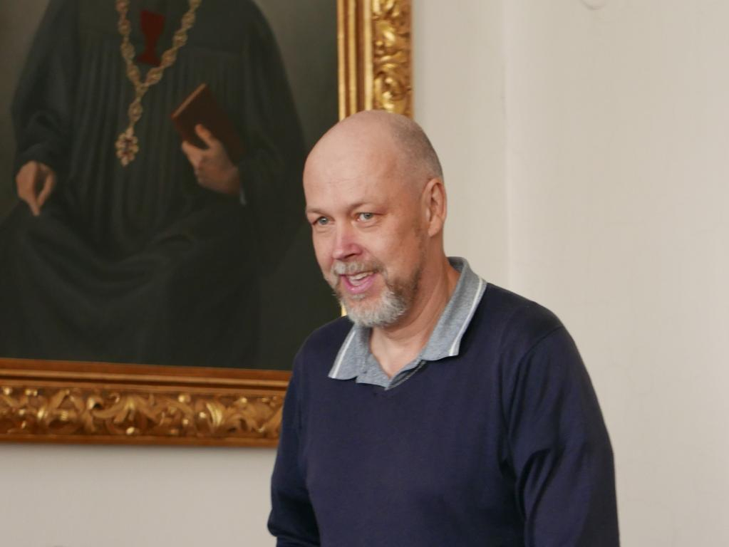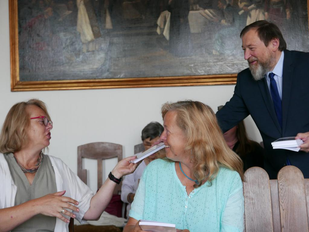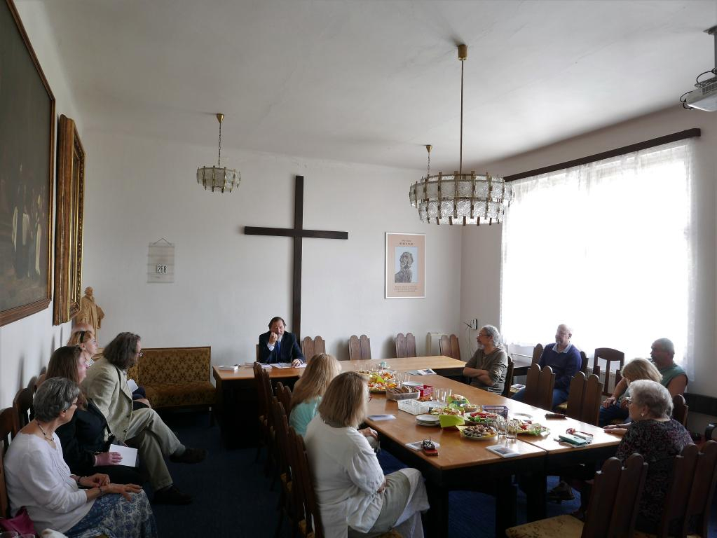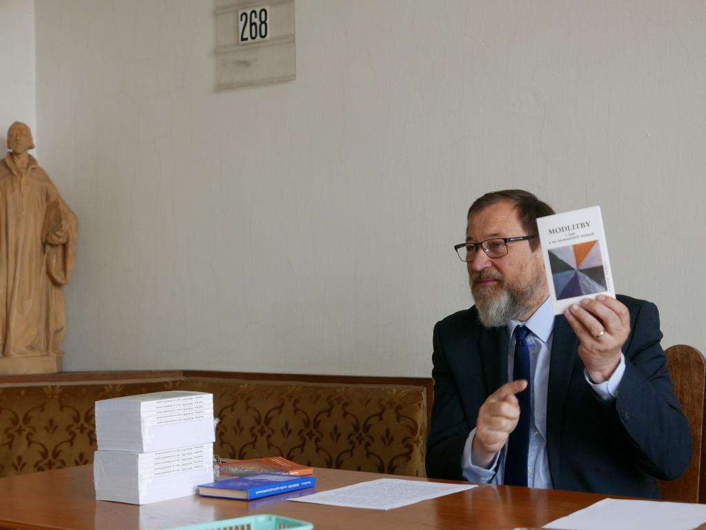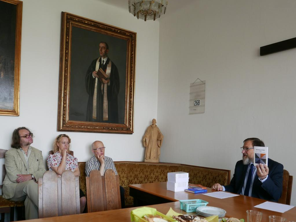 Fotografie z prezentace nové knížky současného patriarchy bratra Tomáše Butty "Modlitby v čase a na rozmanitých místech". Modlitby zazněly při bohoslužbách či v různých příležitostech v letech 2019-2023, jsou připomenutím těchto událostí, ale mohou být i pomůckou k vlastním modlitbám v různých situacích církve. Knihu vydala Církev československá husitská v edici Blahoslav, 2023.