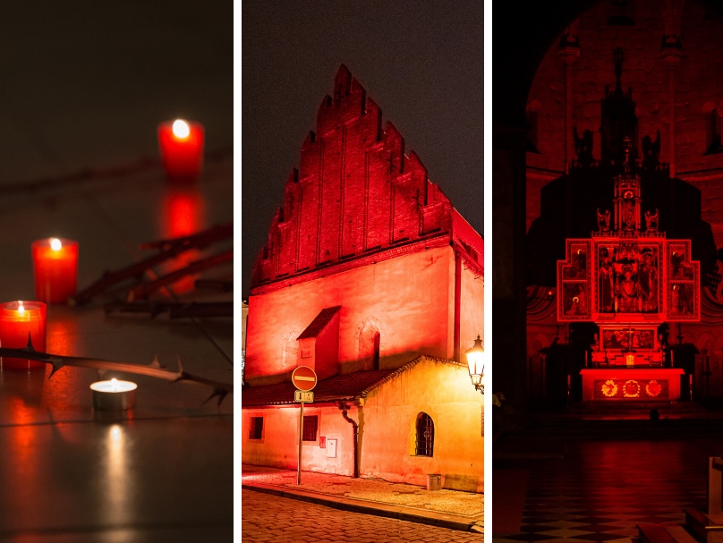Zveme vás, jako představitele církví, především na židovsko křesťanskou modlitbu od 18.00 h ve velké aule Karolina, na následující (od 18.45) průvod se svíčkami kolem červeně nasvícených sakrálních památek (kostel sv. Mikuláše CČSH, Staronová synagoga a kostel sv. Jiljí) a na následný charitativní koncert.