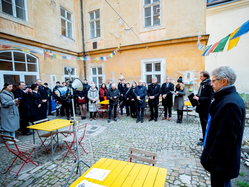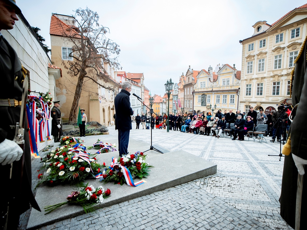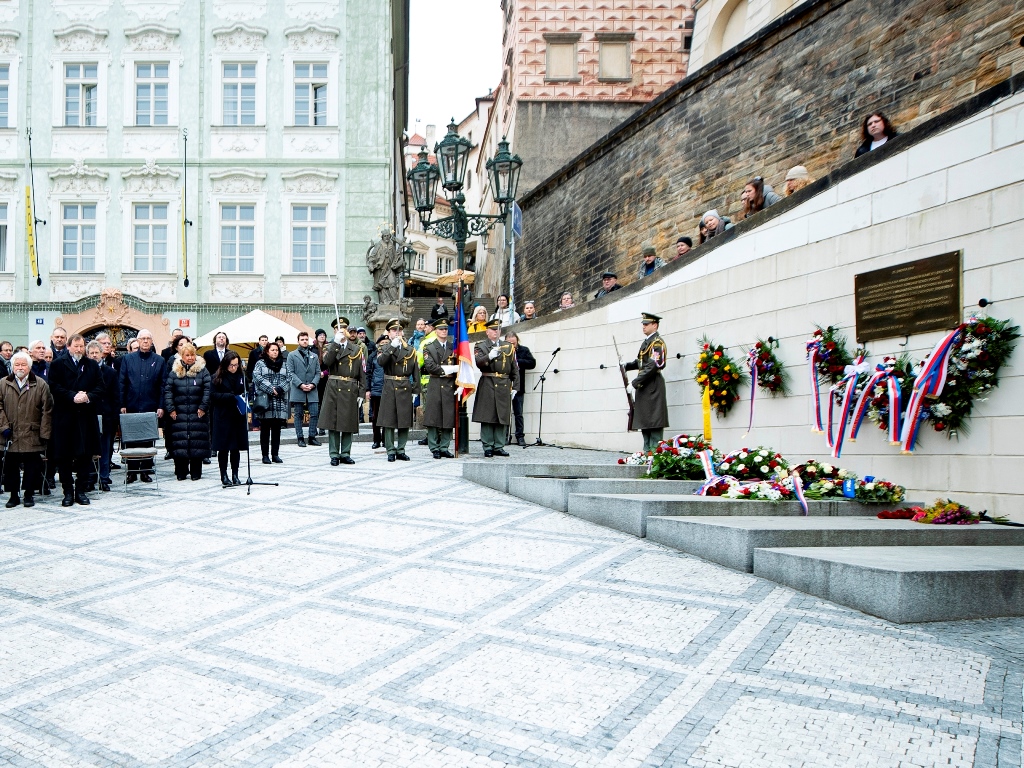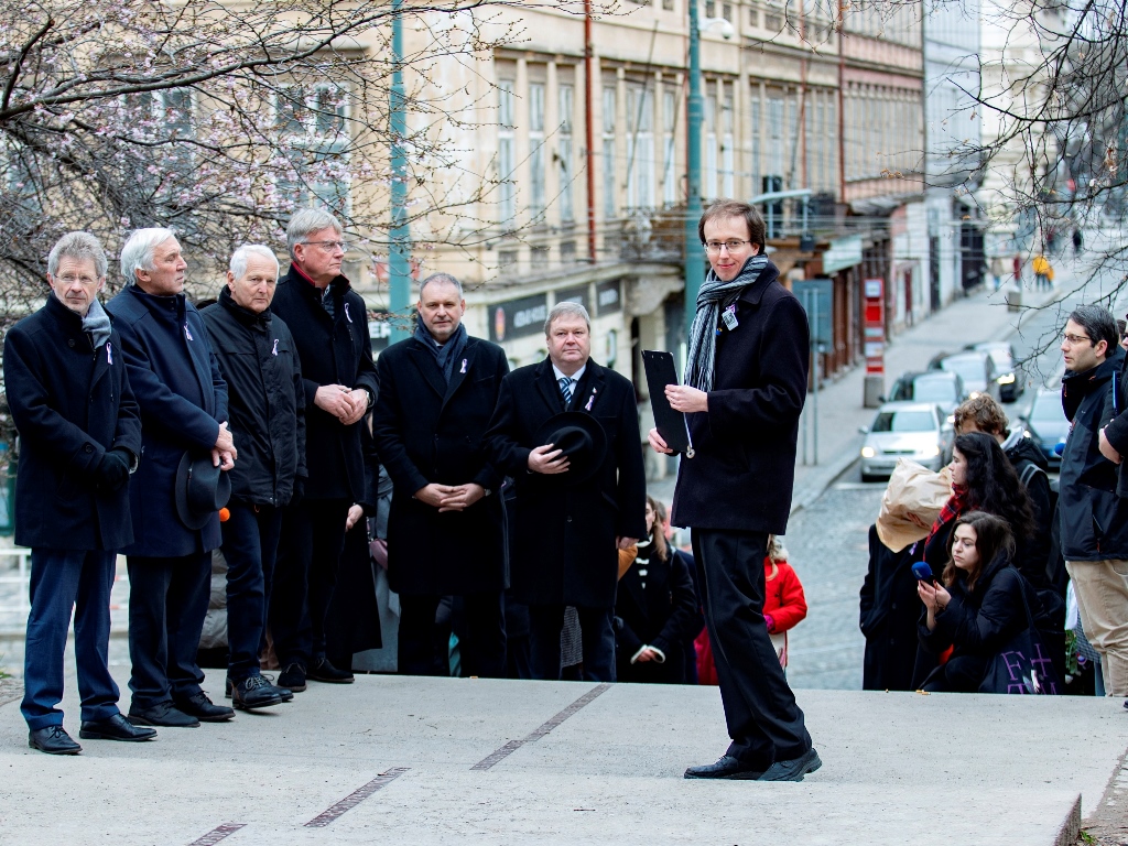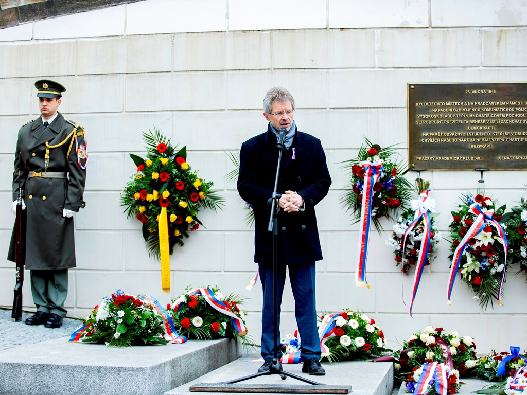 Na pochod navázalo pietní shromáždění u desky v Nerudově ulici. Promluvili na něm představitelé Senátu, vysokých škol a zástupci studentů. V závěru před státní hymnou pronesl duchovní promluvu Tomáš Butta, patriarcha CČSH. Přítomni byli například doc. Petr Pithart, pražský primátor Bohuslav Svoboda i organizátoři a účastníci festivalu Mene Tekel, který ve spolupráci se Senátem Parlamentu České republiky a Pražským akademickým klubem 48 připomínkovou akci u příležitosti 76. výročí pochodu studentů za svobodu a demokracii na Pražský hrad v roce 1948 spolupořádal.