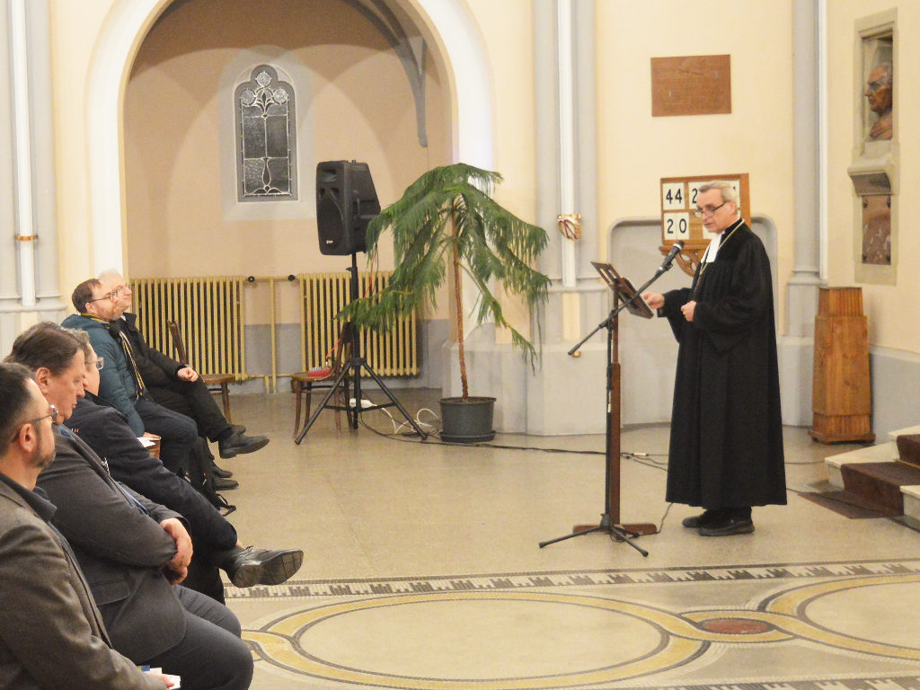 Kázání vrchního rady Bavorské luterské církve Dr. Michaela Martina, člena Rady GEKE při úvodní bohoslužbě v Husově sboru v Dejvicích na zahájení konference GEKE na téma Demokracie a církev, konané 11. 3. - 15. 3. 2024 v prostorách Úřadu Ústřední rady CČSH.