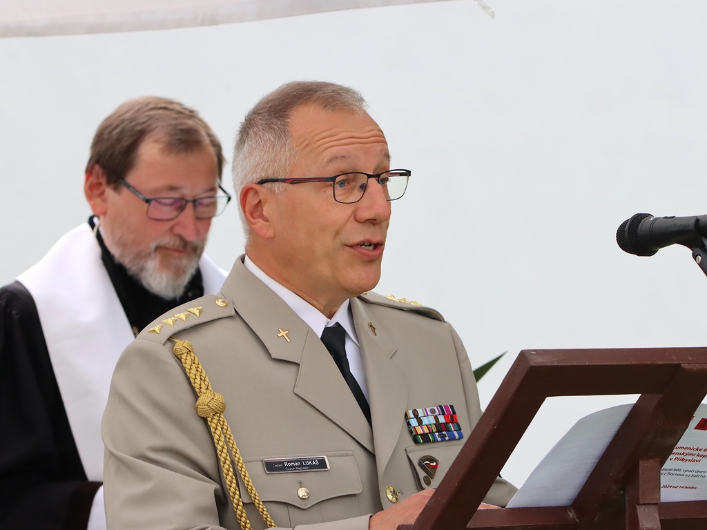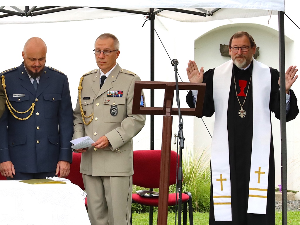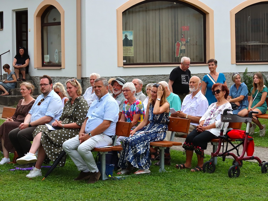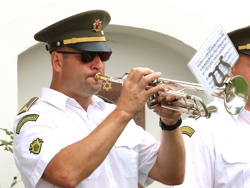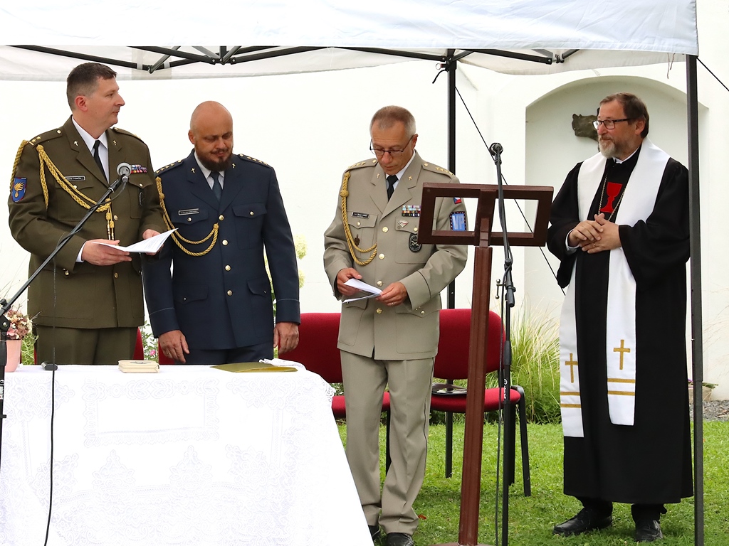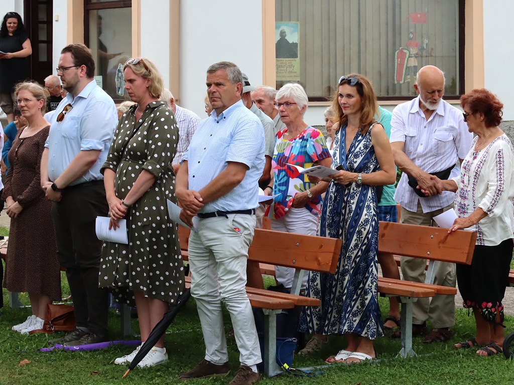 Této bohoslužbě předcházelo uctění památky obětí holocaustu a komunismu s položením květin k pamětním místům v nádvoří.
