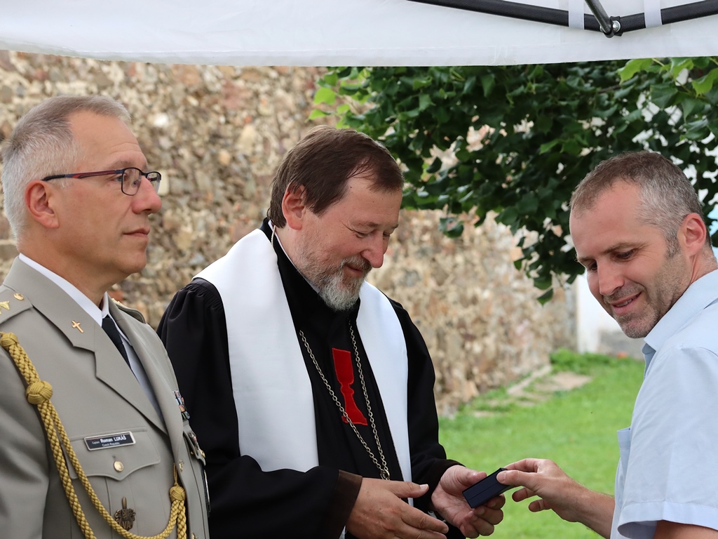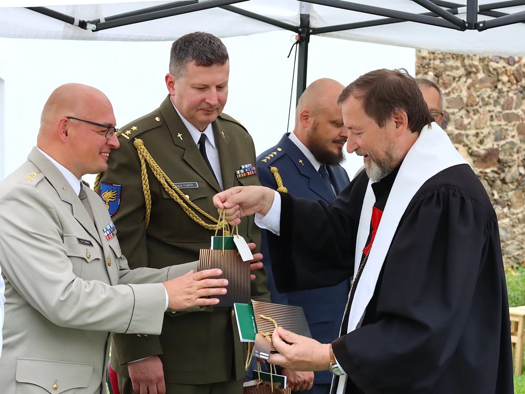 Po skončení bohoslužby předal vojenským kaplanům a duchovním pan starosta Martin Kamarád stříbrné pamětní medaile, které nechalo město vyhotovit k Žižkovu jubileu. Pan starosta zdůraznil, že materiál připomíná, že se v minulosti v Přibyslavi těžilo stříbro. Bratr patriarcha Tomáš předal panu starostovi a kaplanům a dalším osobnostem také pamětní medaile. Nádvoří bylo zaplněno těmi, kteří se účastnili bohatého programu „Středověkého dne“, jehož součástí byla i tato ekumenická bohoslužba. Přítomni byli též hosté z partnerského města v Holandsku. Do Přibyslavi přijeli i členové CČSH z blízkých náboženských obcí brněnské diecéze i z dalších míst.
