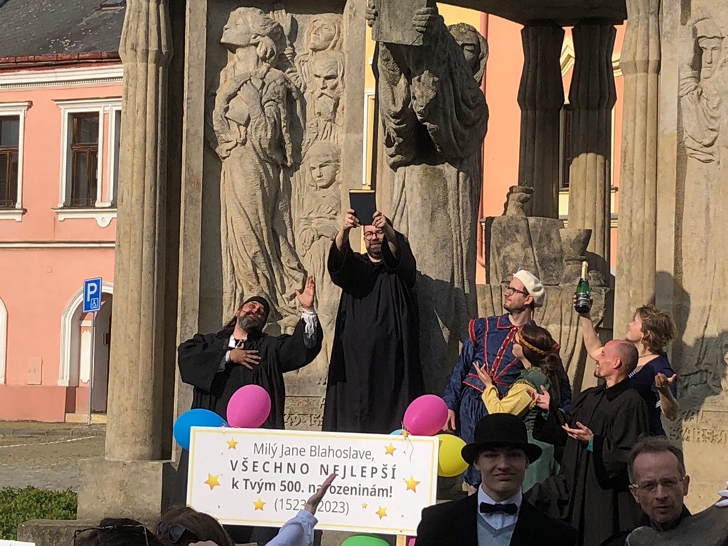 Dne 20. 5. 2023 se uskutečnilo odpoledne s názvem „Hledání Blahoslavova rodného domu“ na Horním náměstí v Přerově.