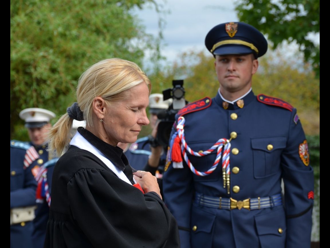 Pietního aktu se zúčastnili členové Československé obce legionářské, Sokolové i zástupci Církve československé husitské. Věnce a kytice byly položeny za doprovodu hudby hradní stráže. Farářku Církve československé husitské Janu Šmardovou Koulovou doprovázeli při kladení květů pravnuci ruského legionáře generála Číly. Každoročně se společně s církví účastní i zástupci škol či mládeže.