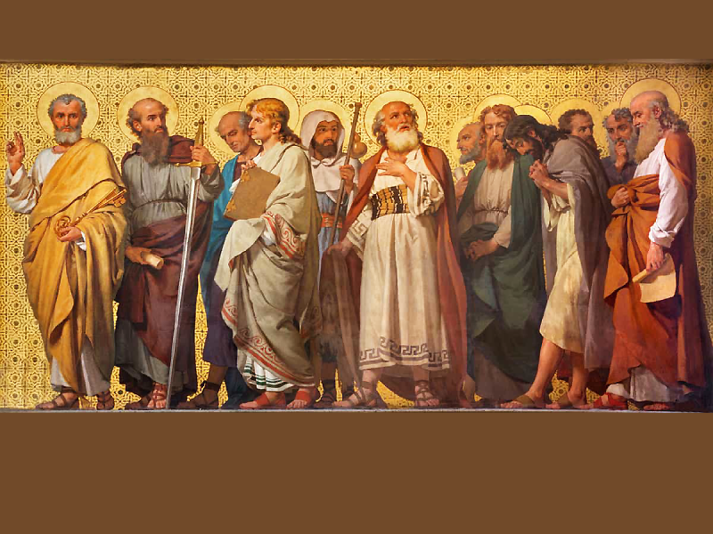Ilustrace: Symbolická freska Dvanáct apoštolů v kostele Chiesa di San Dalmazzo od Enrico Reffo z r. 1914