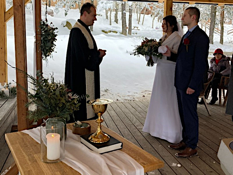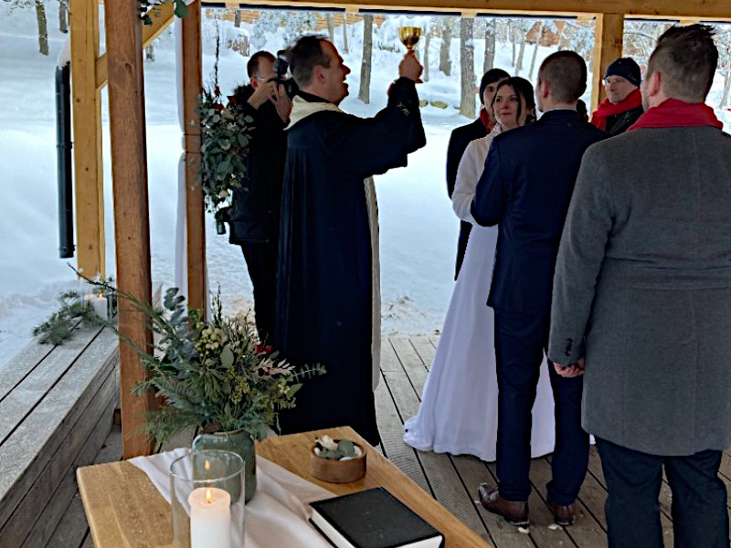 Poslední svatební obřad tohoto roku byl v sobotu 17. 12., ale nikoli v kostele. Snoubenci si přáli mít krásný zimní svatební den v přírodě, což se jim podařilo nad všechna očekávání. Na 4. adventní neděli jsme slavili v úvodu bohoslužeb svátost Pokání, jak se u nás říká Vánoční zpovědi. I přes poměrně velký mráz sto dvacet účastníků vyslechlo zvěst z Matoušova evangelia 1,18-25. Naši zpěváci spolu s varhanicí během večeře Páně připravili trojhlasný kánon Magnificat. Varhanice Nikola Slavíčková spolu s trumpetistou Martinem Kakáčem pro nás připravili opravdu slavnostní bohoslužby. Každou neděli po bohoslužbách ještě část účastníků bohoslužeb rádo posedí v sále na faře. V civilním povolání pracuji jako stavbyvedoucí. A rovněž majitel naší firmy chodí pravidelně na bohoslužby i různá setkání. Na pátečním firemním večírku mi říká: „Nesmíme zapomenout vzít také nějaké občerstvení na nedělní posezení po bohoslužbách." To jsme však netušili, jaké nás čeká ještě jiné občerstvení.
