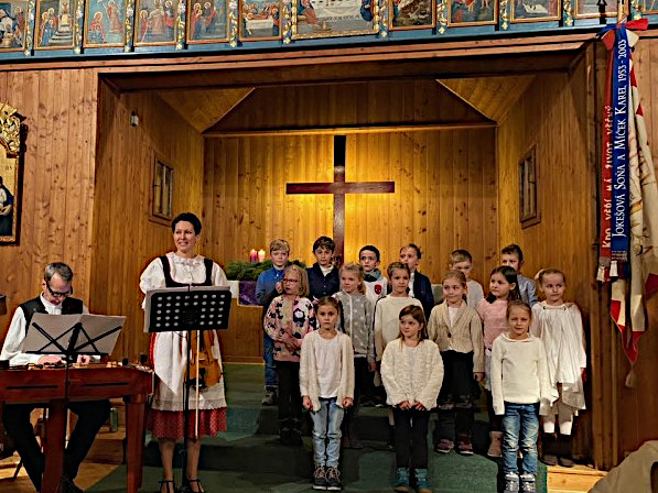 Bratr Jirka Forst s manželkou Marcelkou jsou jedni z těch, kdo pro různá setkání ve farnosti připravují občerstvení a vaří skvěle guláše. Před 14 dny jsme naslouchali evangeliu o Janu Křtiteli: „...potravou mu byly kobylky a med divokých včel." (Matouš 3, 4b) Jirka se rozhodl nám dát evangelium také ochutnat. Připravil nám menu Jana Křtitele. Ne každý si na ně troufl, ale nejlepšími strávníky byli ti nejmenší. Manželky říkali svým drahým polovičkám: "Jestli to sníš, tak už Ti nedám nikdy pusu.“ Chlapská odpověď zněla: „Jsme na jihu Moravy, dáme si na to štamprlu slivovice a nic nepoznáš... budeš z kostela dom řídit auto ty!" Večer se konal poslední nedělní adventní koncert, velmi oblíbené cimbálové muziky Majerán. Lidová hudba se i u nás těší oblibě. Přišlo více než sto třicet spokojených posluchačů, přičemž si mnozí rádi s muzikanty zazpívali. Bohu díky za živé společenství s Kristem i mezi sebou navzájem. Jsme jedno společenství, ač jsme každý malinko jiný, přece nám to není jedno!