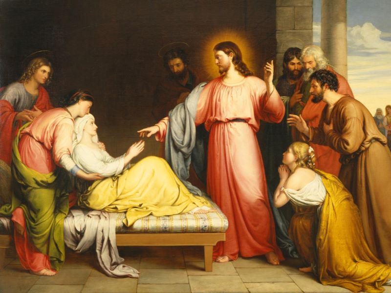 Šimonova tchyně ležela v horečce. Hned mu o ní pověděli. Přistoupil, vzal ji za ruku a pozvedl ji. Horečka ji opustila a ona je obsluhovala. (Mk 1,29-31)