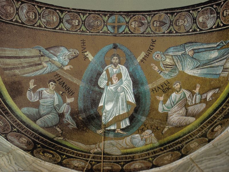 Obrázek: neznámý autor (mozaika): Proměnění Ježíše Krista (cca 600). Klášter svaté Kateřiny (na úpatí hory Sinaj). Fotograf: Michel Bakni (Wikimedia Commons).