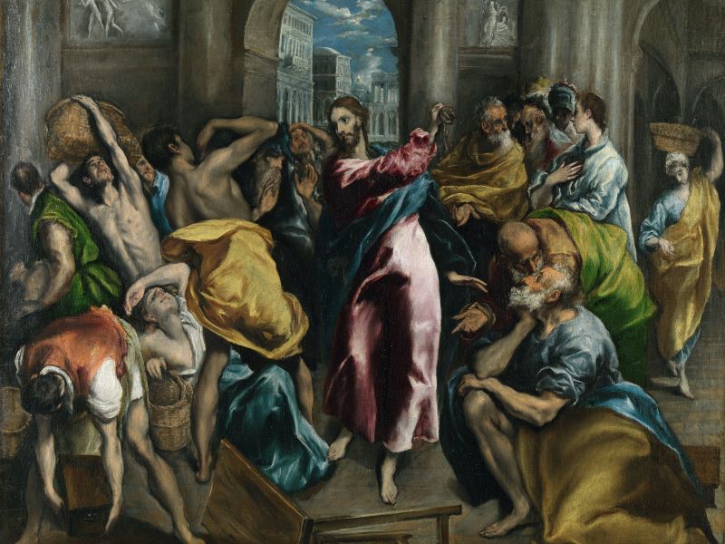 Obrázek: El Greco (1541–1614): Ježíš vyhání směnárníky z chrámu (cca 1600), National Gallery London (Wikimedia Commons).