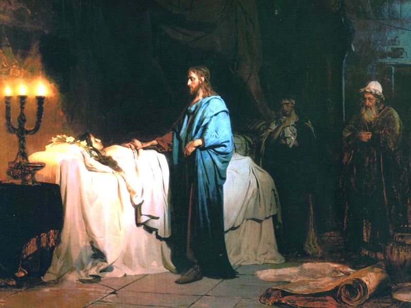 Obrázek: Ilya Repin (1844–1930): Vzkříšení dcery Jairovy (1871), Státní ruské muzeum (Wikimedia Commons).