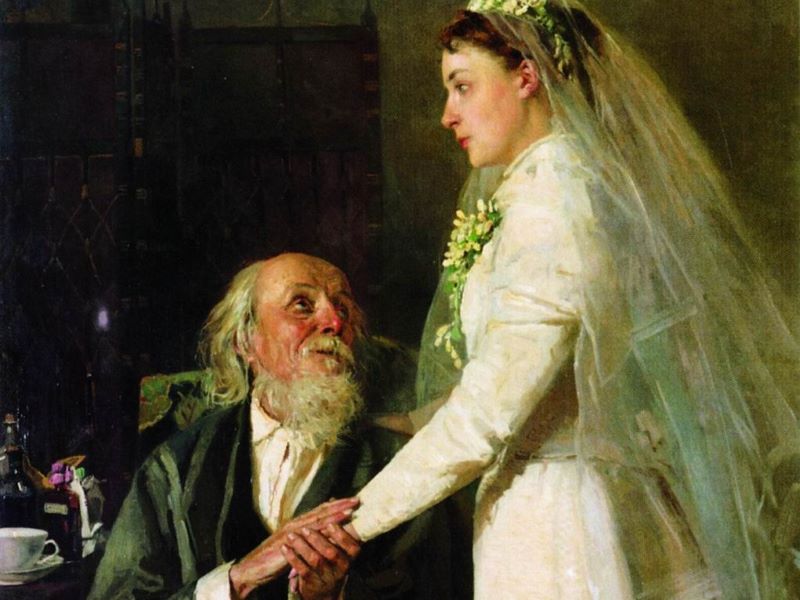 Obrázek: Vladimir Makovsky (1846–1920): Rozloučení (1894), Regionální muzeum umění Samara (Wikimeda Commons).