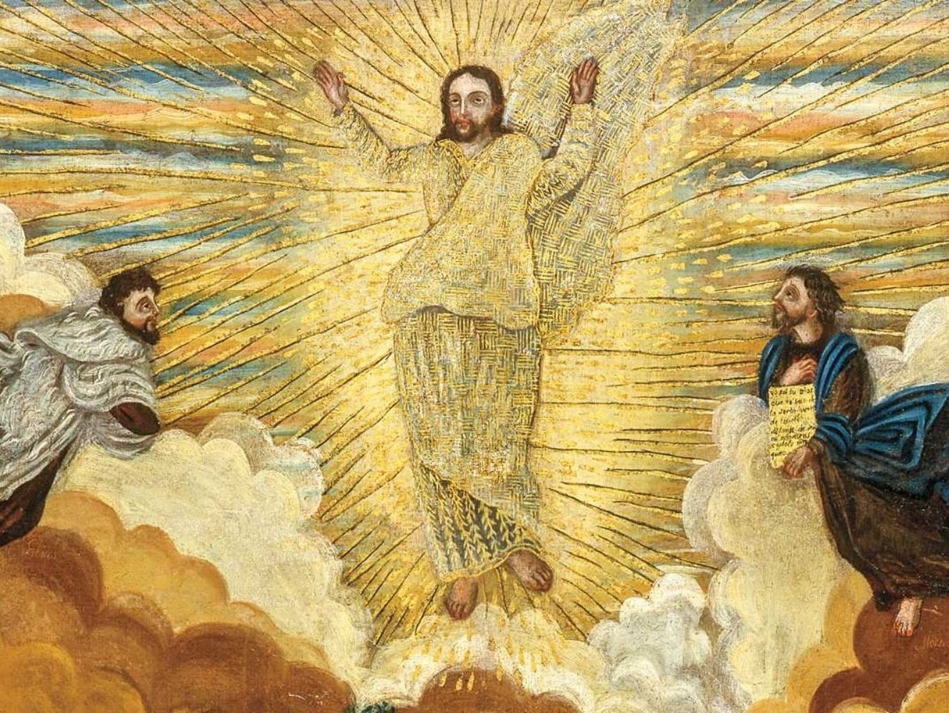 Jak jsem psal, nakonec tam sami nebyli, vedle Ježíše se objevuje Mojžíš a Eliáš. Důležité je, že se nejen objevují, aby doplnili scénu, ale vstupují do rozhovoru s Ježíšem. Zdá se, že tak ještě dokončují své poslání, které ve svých životech započali. Obě dvě postavy byly spojeny s eschatologickým očekáváním a nyní jsou svědky blížících se zásadních událostí pro celý svět, Boží příklon k světu obětí a vzkříšením jeho Syna. Když se vrátím zpět k ikonografickému zobrazení, Mojžíš a Eliáš jsou vyobrazeni v mírném předklonu, jako by vzdávali poctu Ježíšovi. Snad tak mlčky souhlasí s jeho misí, neboť skrze něho přijde zlom v dějinách lidstva.