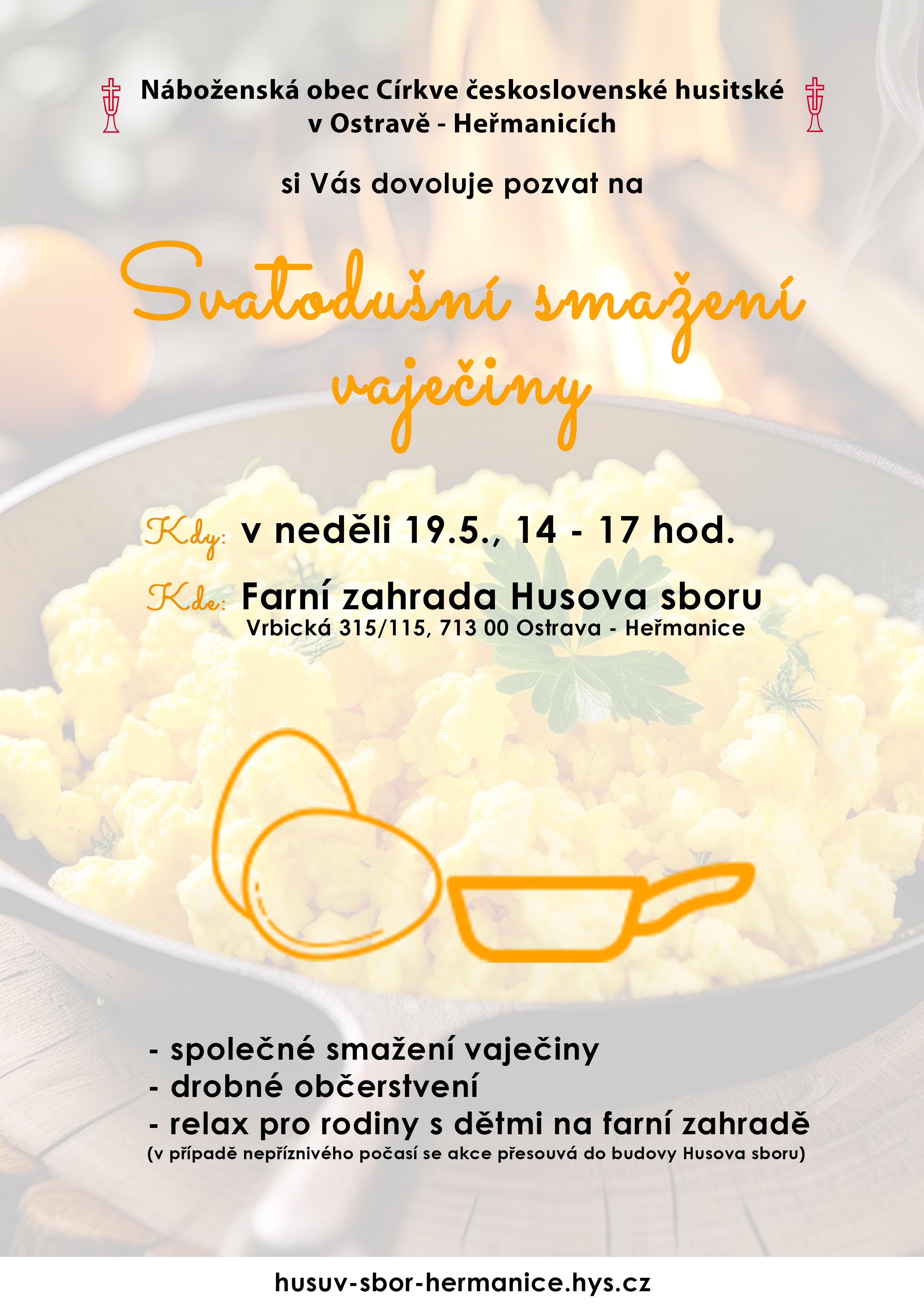 svatodušní smažení vaječiny na Farní zahradě Husova sboru v Ostravě - Heřmanicích - pozvánka